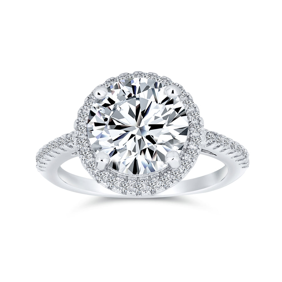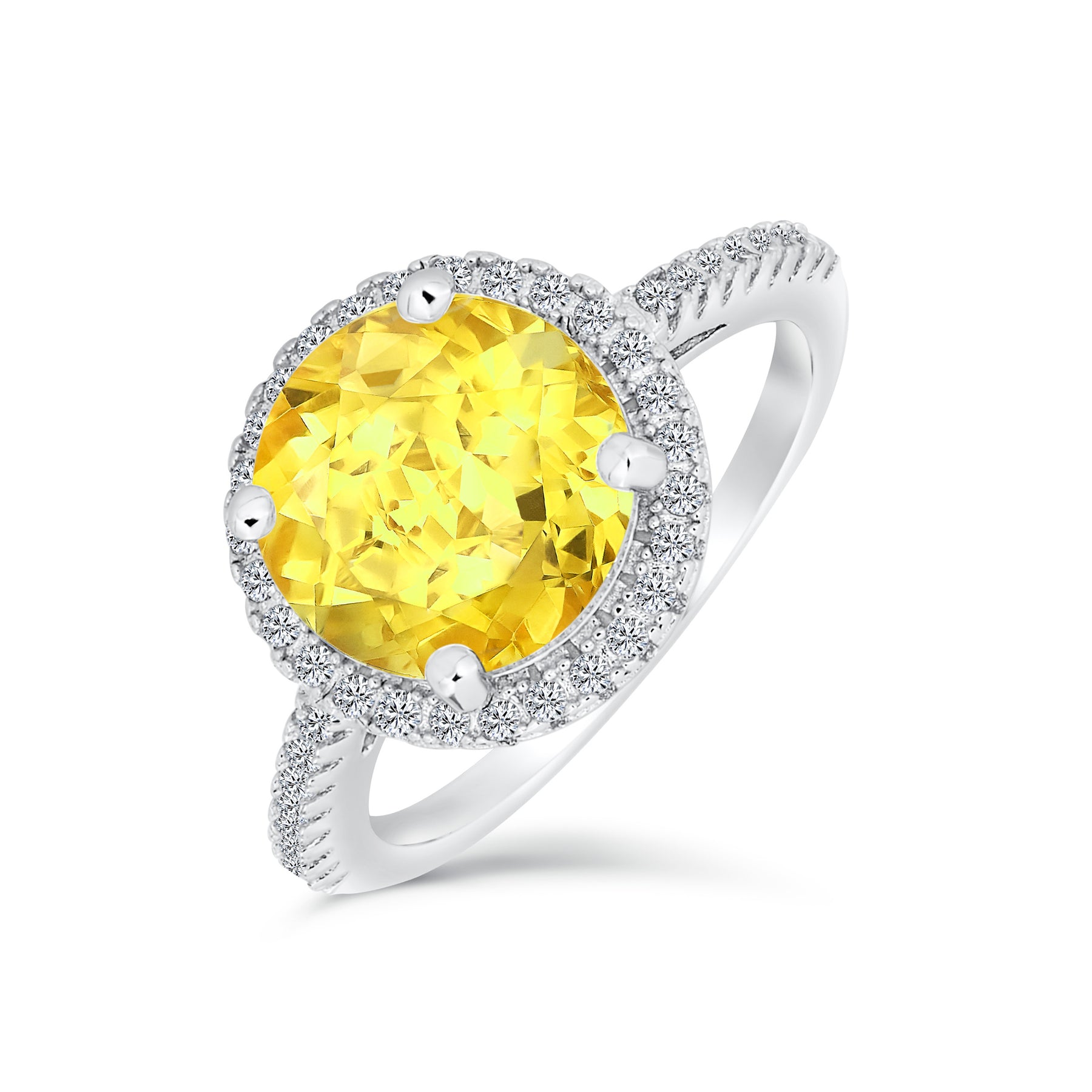 - She will dazzle in our pave round cut simulated canary CZ engagement ring. A halo of clear CZ adds brilliance. This exquisite sterling silver ring is perfect for weddings. Capture the vintage elegance with this empress of engagement rings for women.