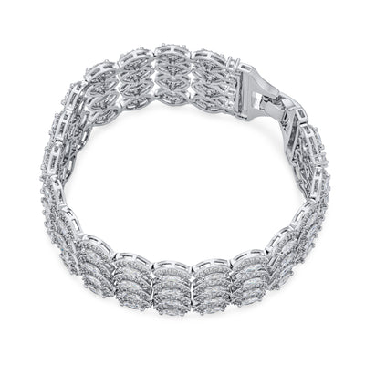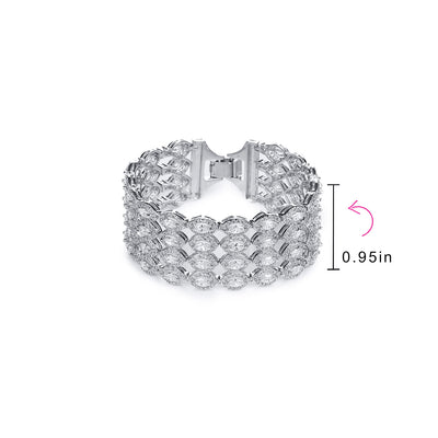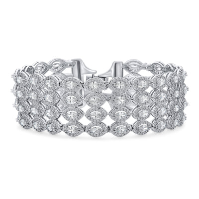 Art Deco CZ Marquise 4 Row Wide Tennis Bracelet Silver
