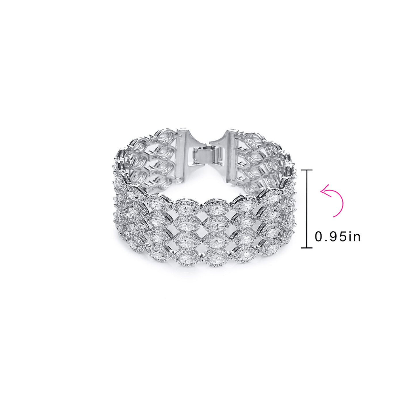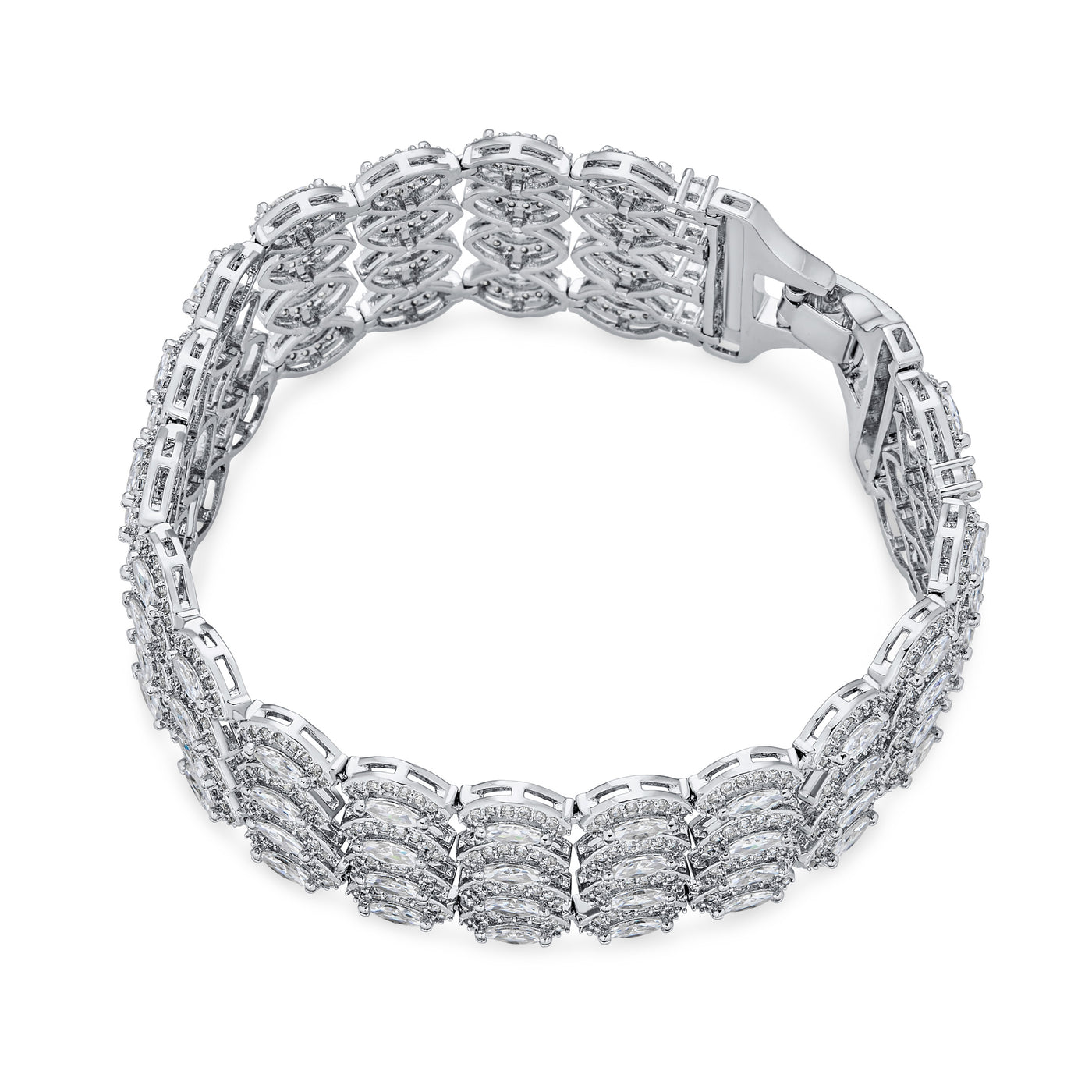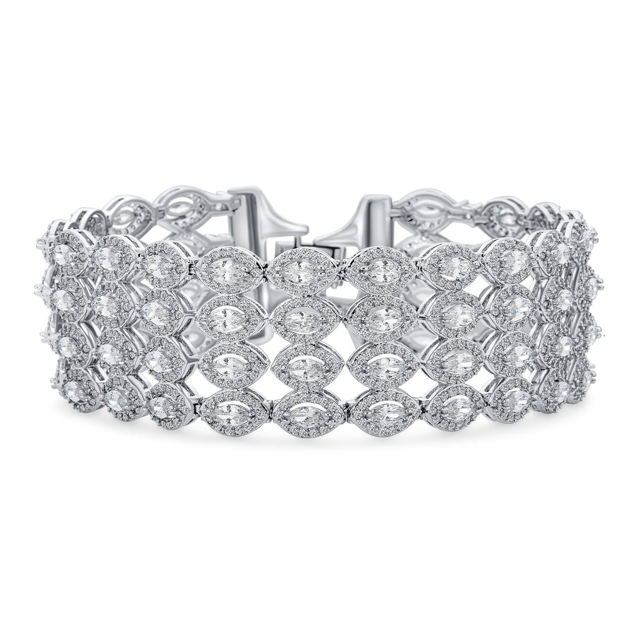 Art Deco CZ Marquise 4 Row Wide Tennis Bracelet Silver Plated 7.5 Inches Bridal - Bling Jewelry