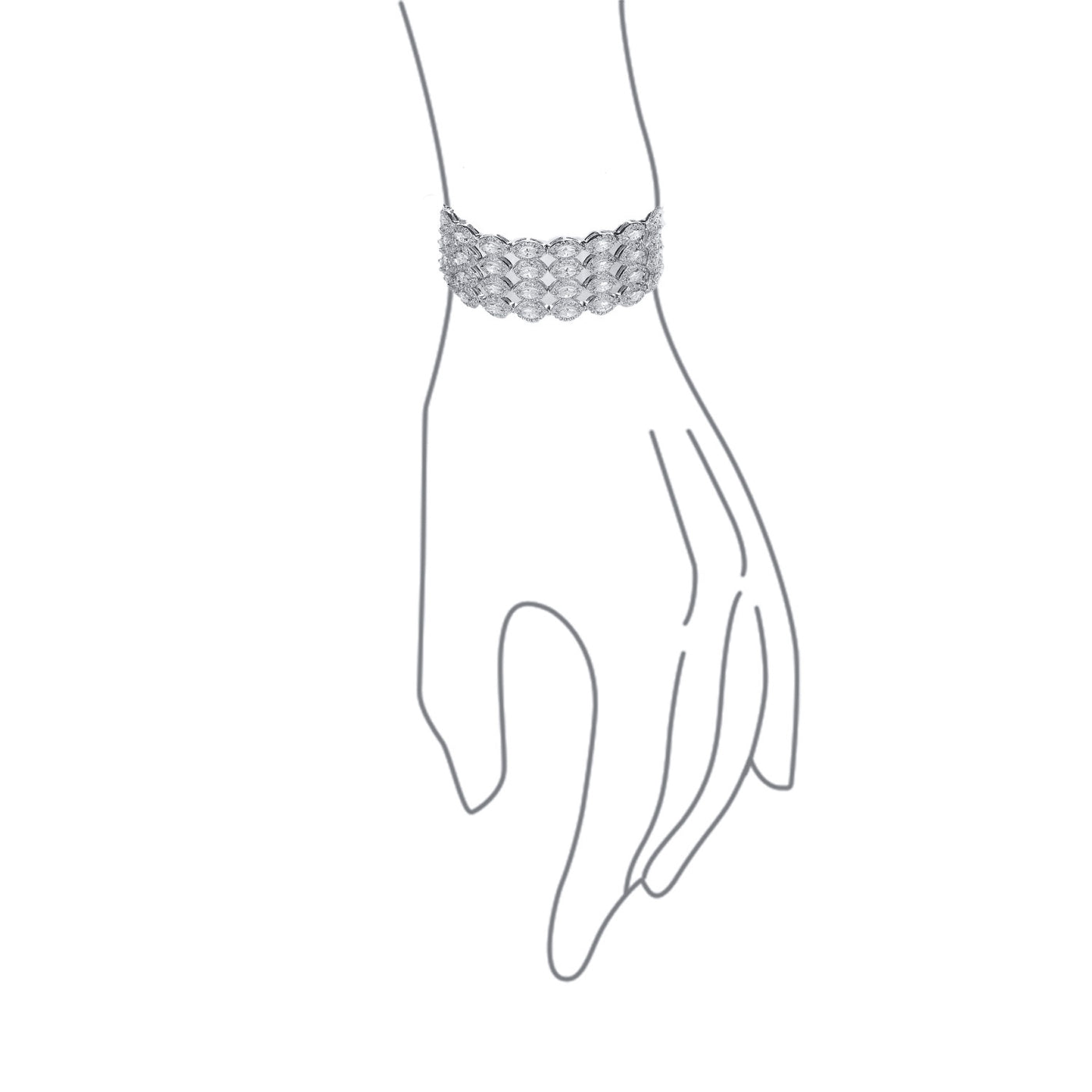 • Enhance your formal attire with this stunning tennis bracelet, adding dazzling shimmer to any outfit. Crafted with four rows of glittering marquise CZs, it makes a scintillating statement. The rhodium-plated setting enhances its lustrous silver tone, creating a timeless, elevated look. Perfect for brides, proms, or special occasions, this bracelet is a breathtaking addition to your jewelry collection. Embrace the elegance of this silver-tone and CZ accessory, making a lasting impression.