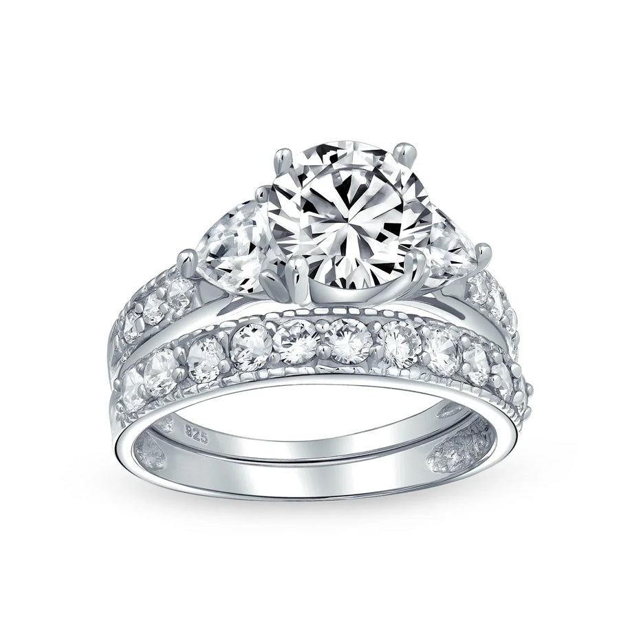 3CT Round Solitaire Heart CZ Pave Band Statement Ring Set