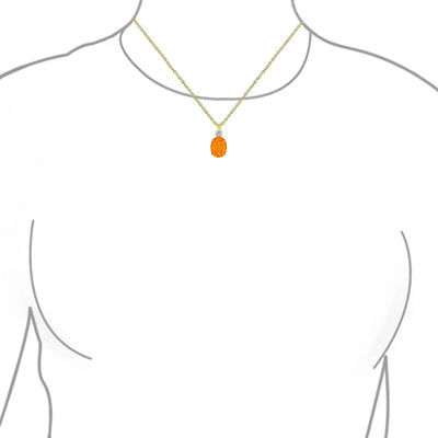 Classic Gemstone CZ Accent Opal Pendant Necklace 14K Gold Plated 16-18 Inch