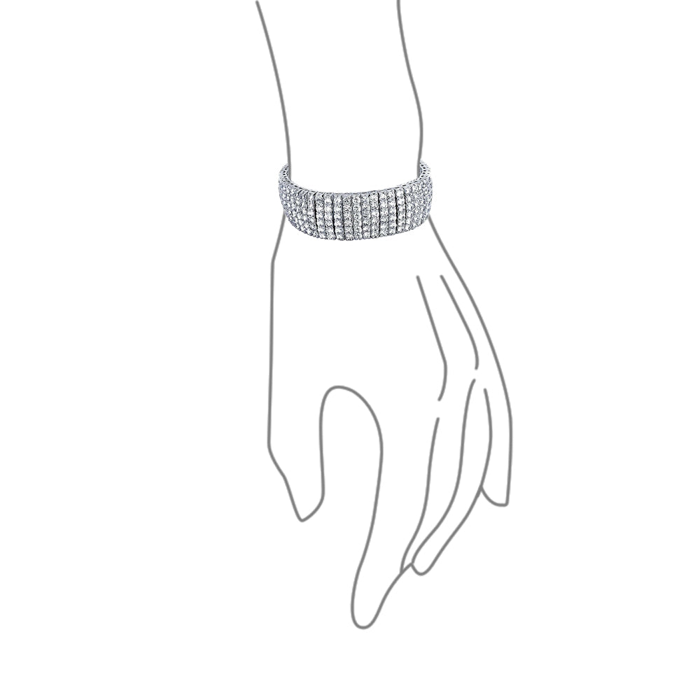 - Enhance your formal look with this stunning tennis bracelet featuring 6 rows of sparkling cubic zirconia stones. Rhodium plated brass and silver tone offer timeless elegance. Ideal for brides, proms, or as a dazzling accessory, it elevates your style effortlessly.