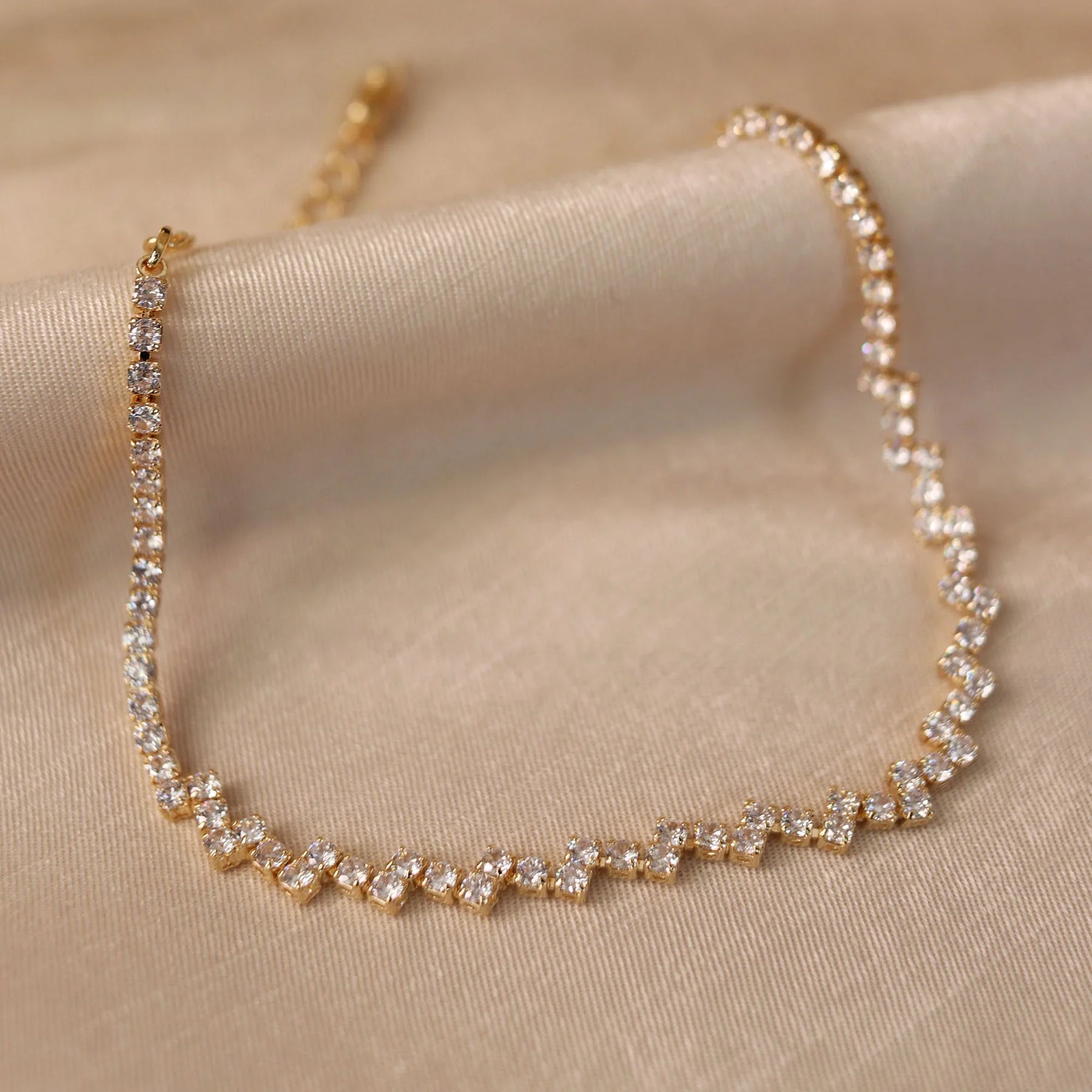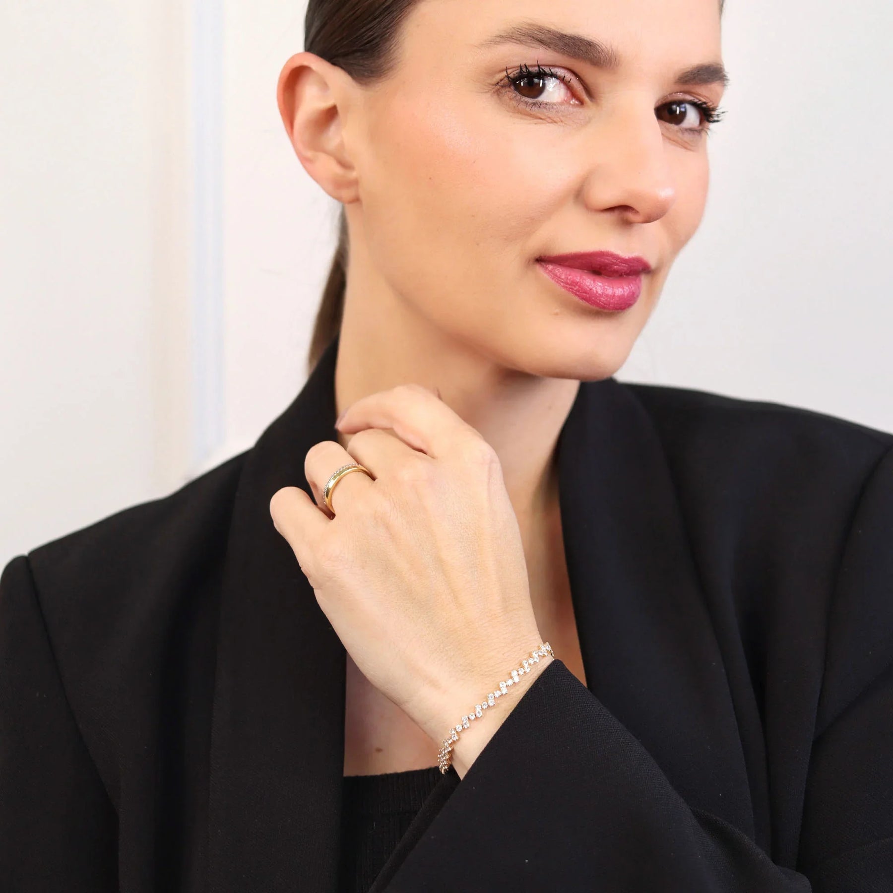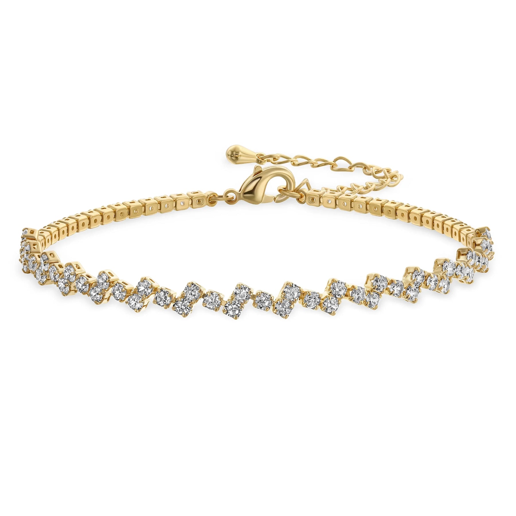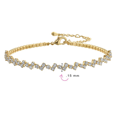 • Add a touch of gold radiance to your look with the Zig Zag CZ Bracelet. This stunning accessory exudes classic beauty with its thin, dainty, sparkling design, making it the perfect addition to both casual and formal ensembles.