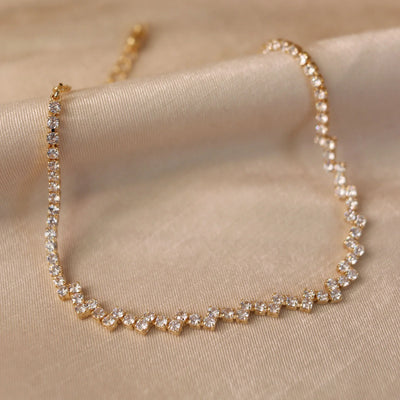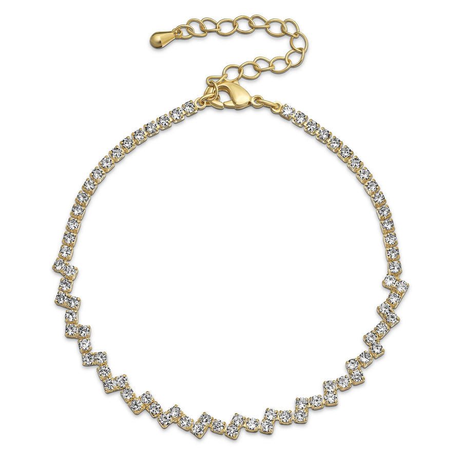 • Add a touch of elegance to any outfit with this stunning single strand CZ zig zag design bracelet . Crafted with high-quality gold plate, this bracelet features a delicate row of sparkling cubic zirconia stones for a subtle yet glamorous touch. Perfect for any occasion, this bracelet is the ideal gift for women who appreciate simple and classy jewelry. Elevate your style or surprise your loved ones with this timeless piece that exudes understated beauty.