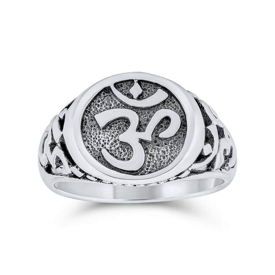 • Featuring a traditional Devanagari script Om on the front and intricate side decorations, this sterling silver jewelry adds a stunning Eastern style touch.