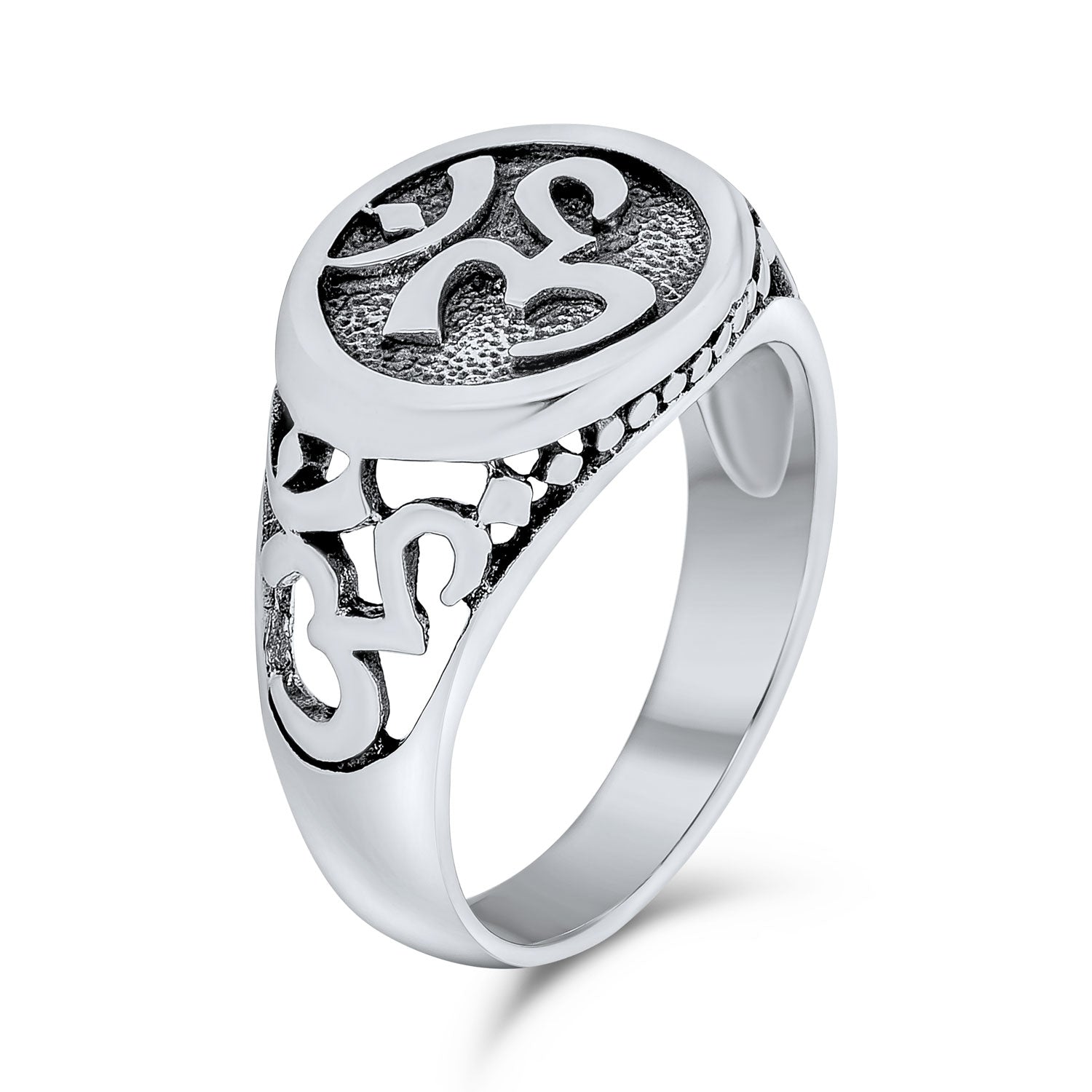 • No need to meditate on this sterling silver ring. It brings serenity and peace of mind with artisan design inspired by traditional motifs. Featuring a traditional Devanagari script Om and intricate side decorations, this ring adds a beautiful touch of Eastern style. Order this jewelry today to add a meaningful and stylish accessory.