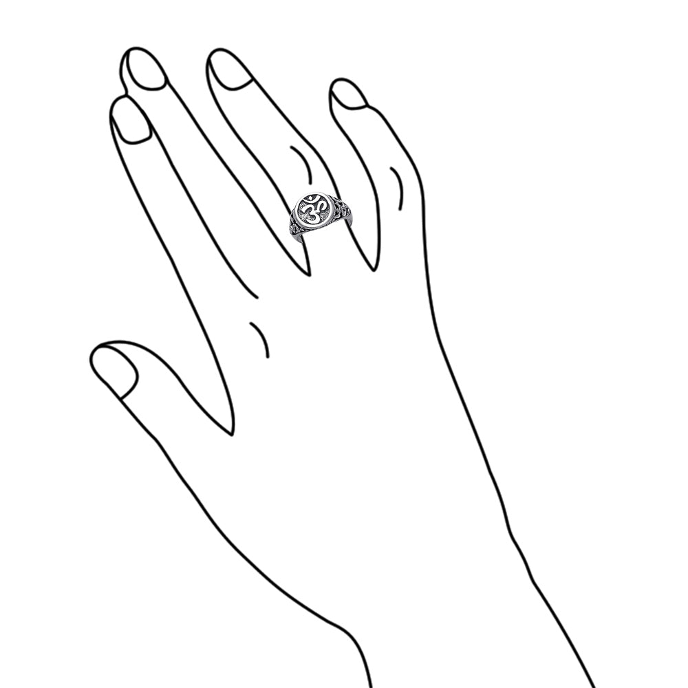 • Embrace tranquility with this sterling silver Om Aum ring featuring intricate knot work. A yoga-inspired 4mm band, a thoughtful gift for yoga enthusiasts.