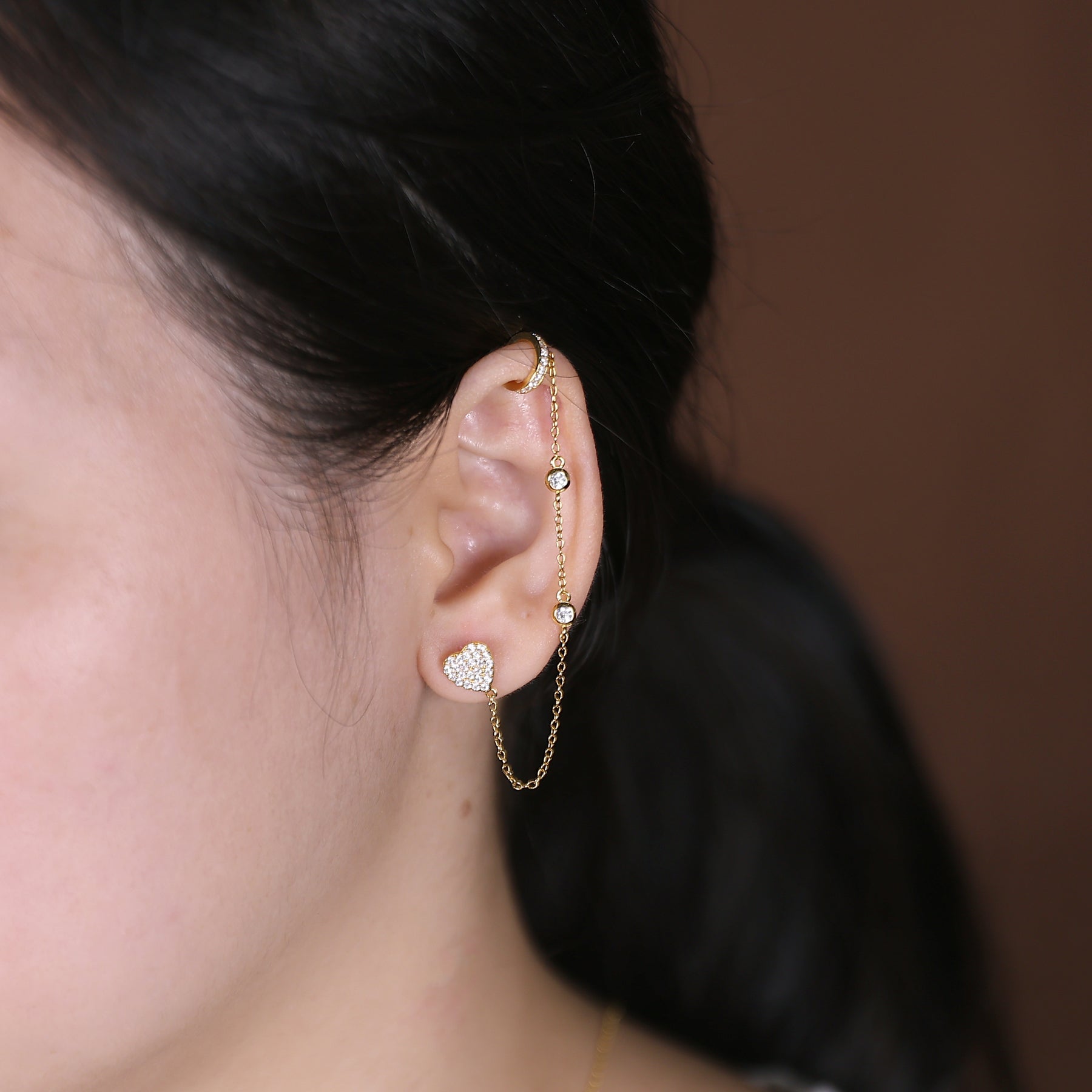 - Even if your style is sleek and minimal, these CZ linked earrings will accent your lobes perfectly. With a separate CZ heart stud for the second ear, our ear cuff set makes a stunning, up to the minute style statement. Add glam to any ensemble with a new cartilage chain earring. We love the modern look of silver chain earrings.