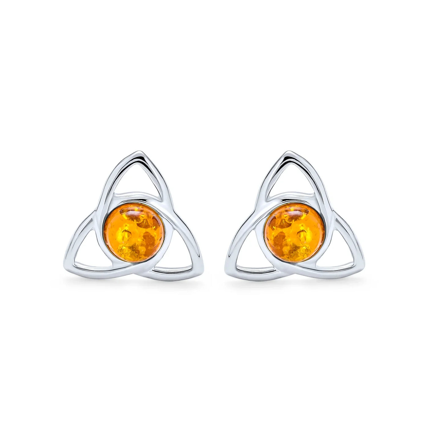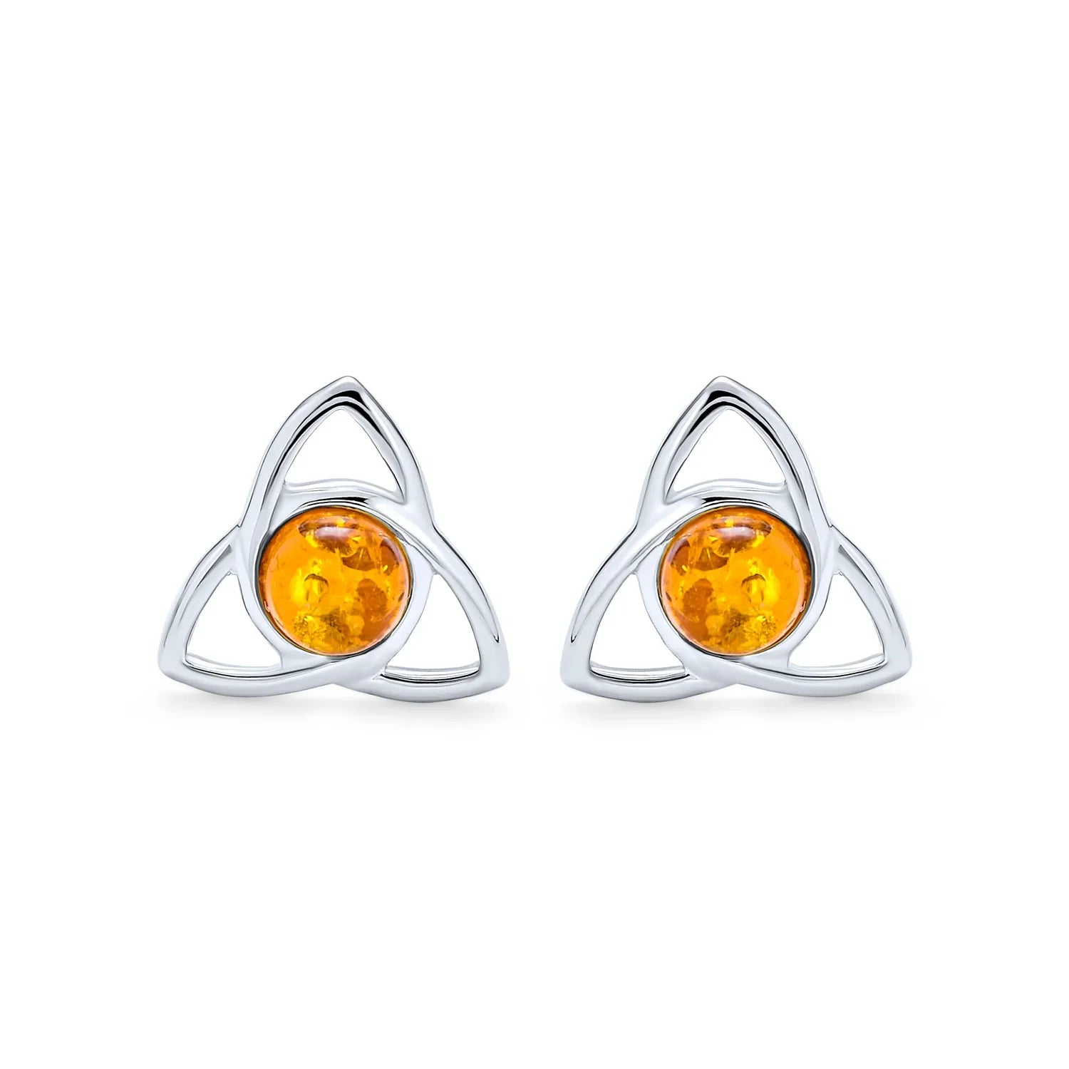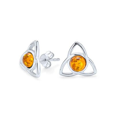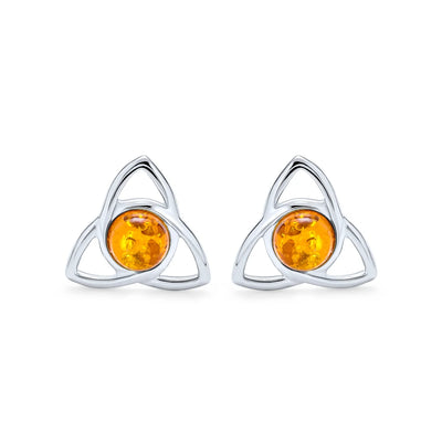 - Enhance any outfit with our elegant triquetra Celtic stud earrings. Crafted from premium 925 sterling silver, they feature a 5mm round Amber gemstone. The warm Amber hues make these earrings versatile for any occasion. Express individuality, celebrate Irish heritage, or make a chic fashion statement. Lightweight at 1.8 grams, they're comfortable for all-day wear. Elevate your style with our sterling silver triquetra love knot earrings. Order now to add Celtic Charm to your jewelry collection.