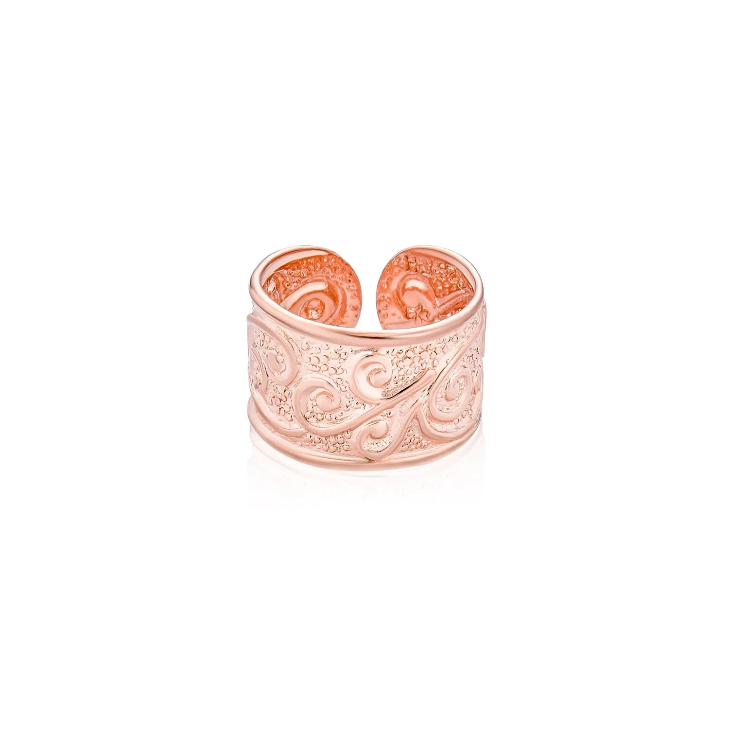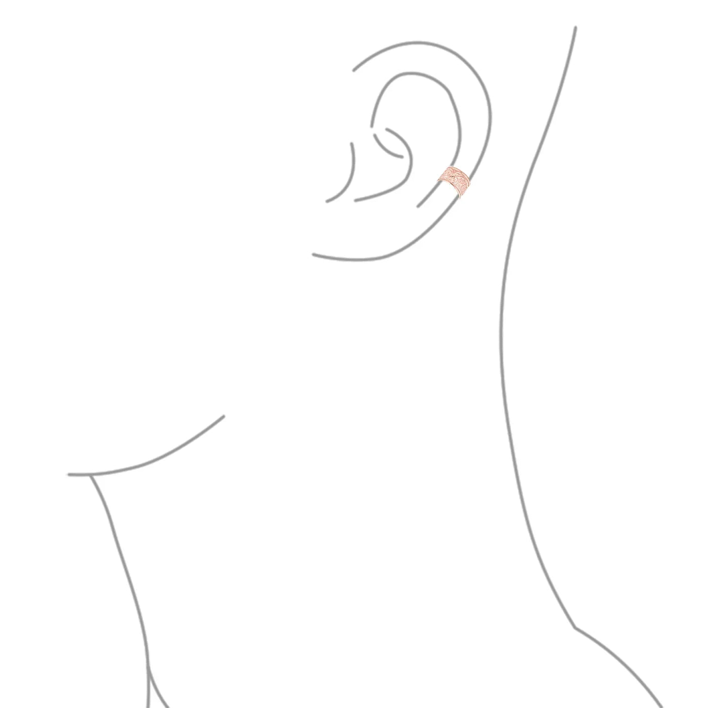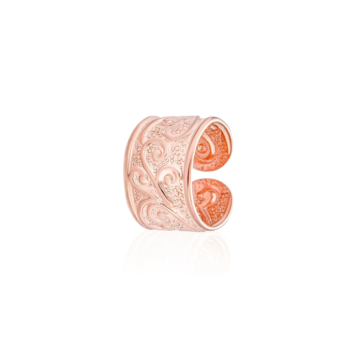 - You dont need an ear piercing for trendy fashionable rose plated sterling silver jewelry. This ear cuff is a scroll swirled design one piece earring anyone with unique style is sure to love.