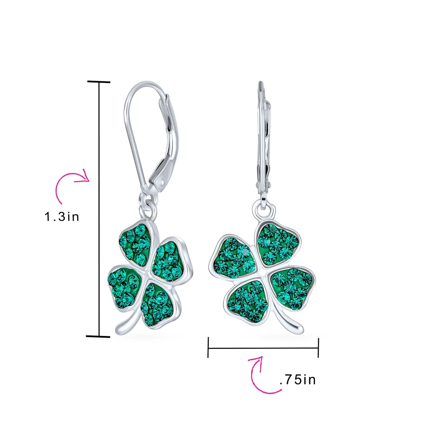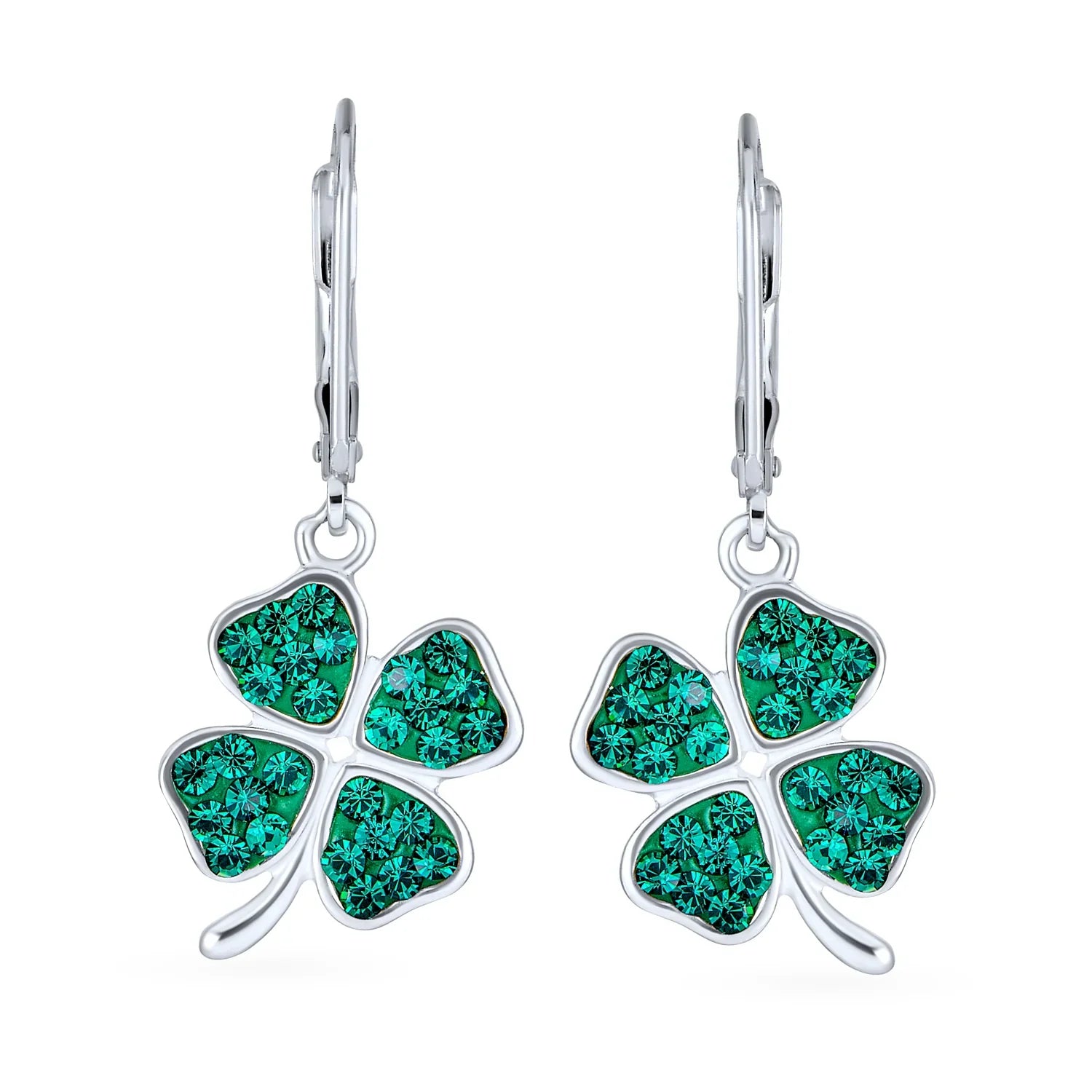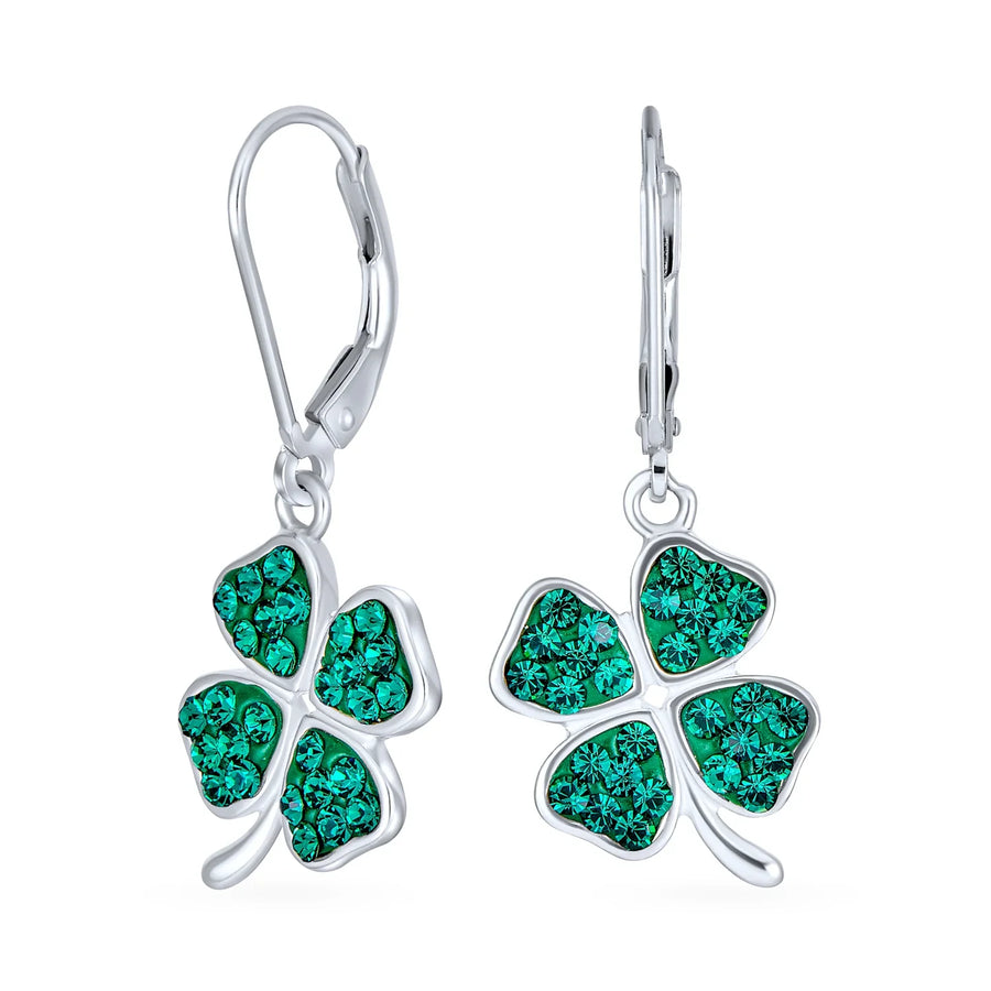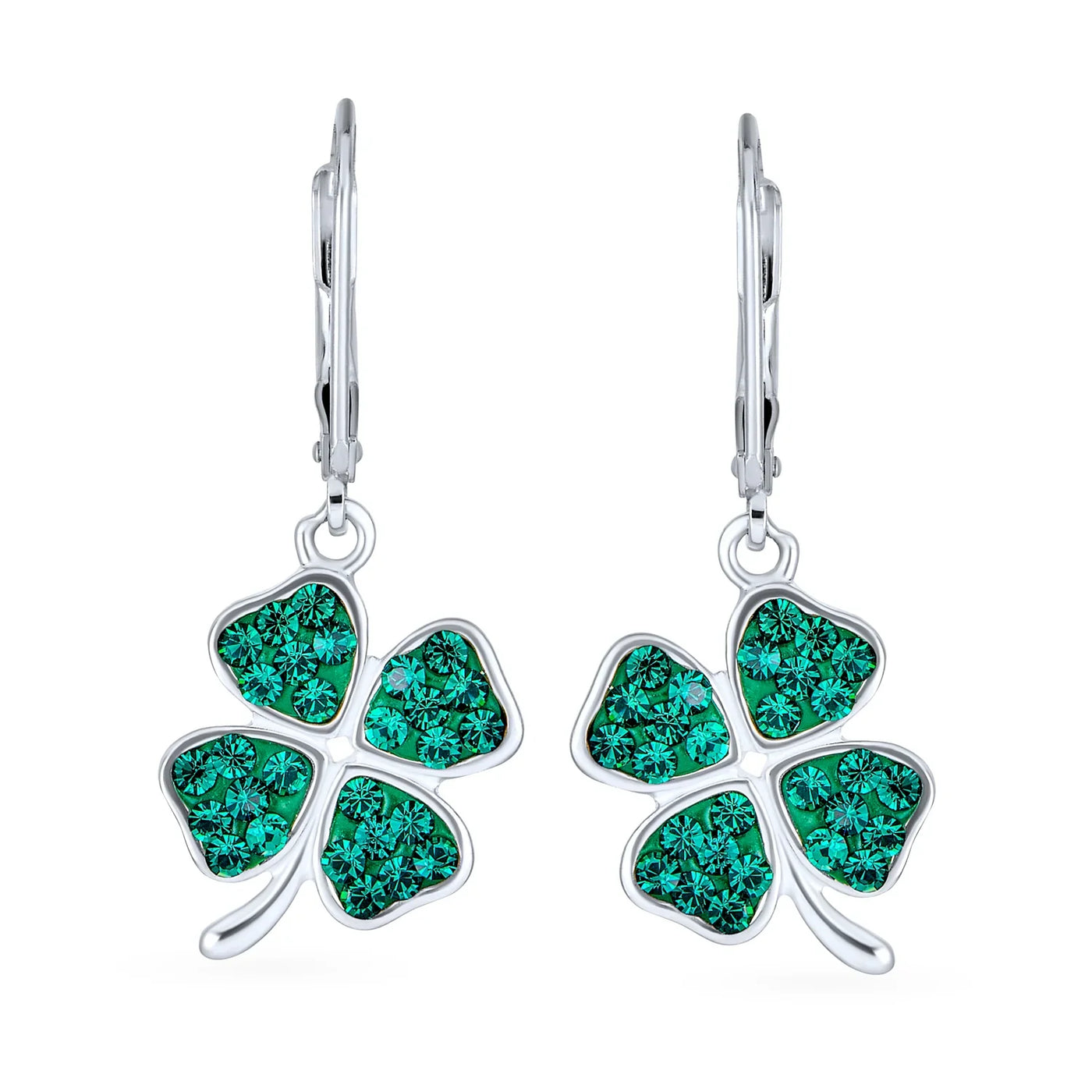 - Embrace Irish luck with these 4 leaf clover earrings. Crafted in .925 Sterling Silver, adorned with green crystals. Secure lever back closure. Perfect for Irish heritage lovers and Celtic history enthusiasts. Don't miss out, order your four leaf clover earrings today!