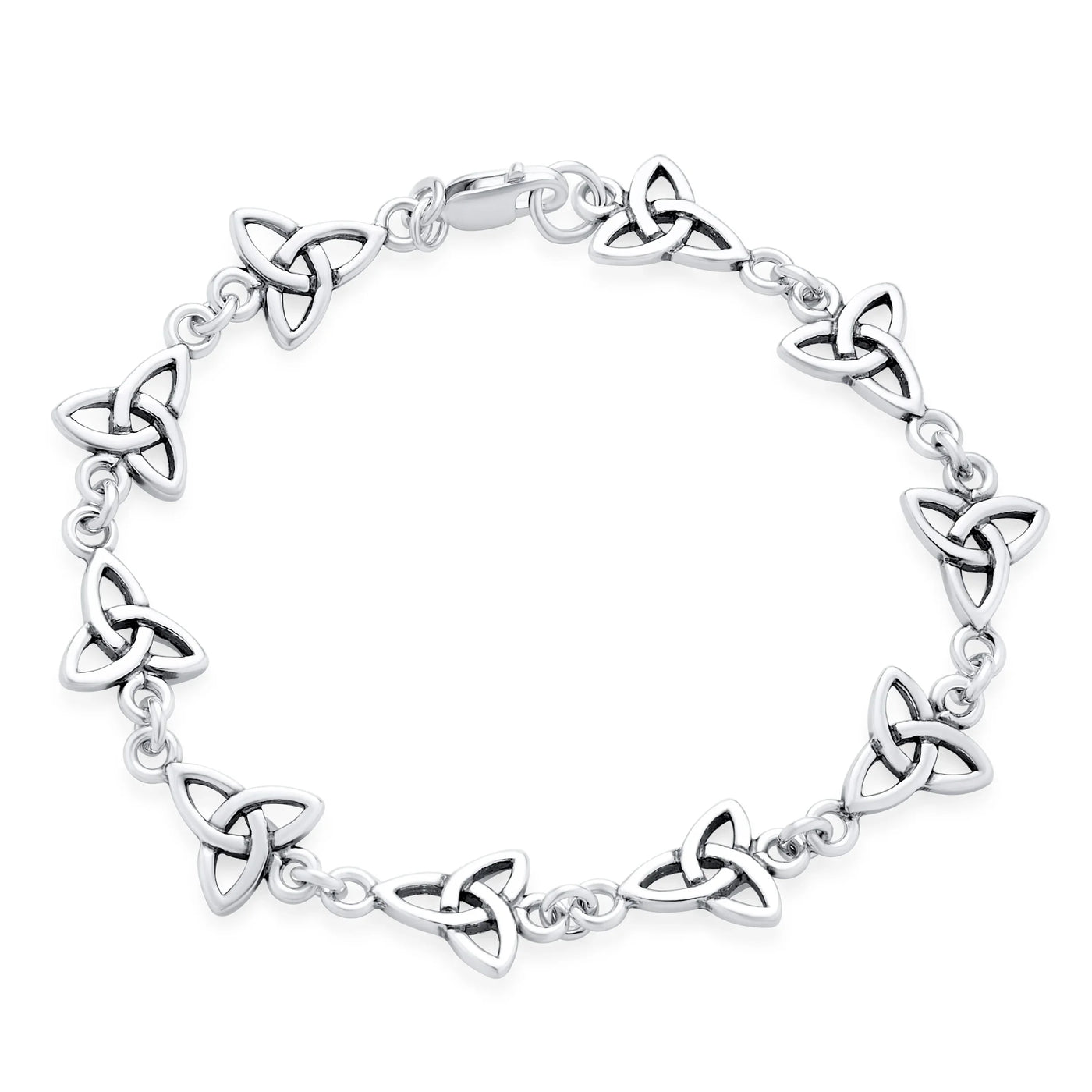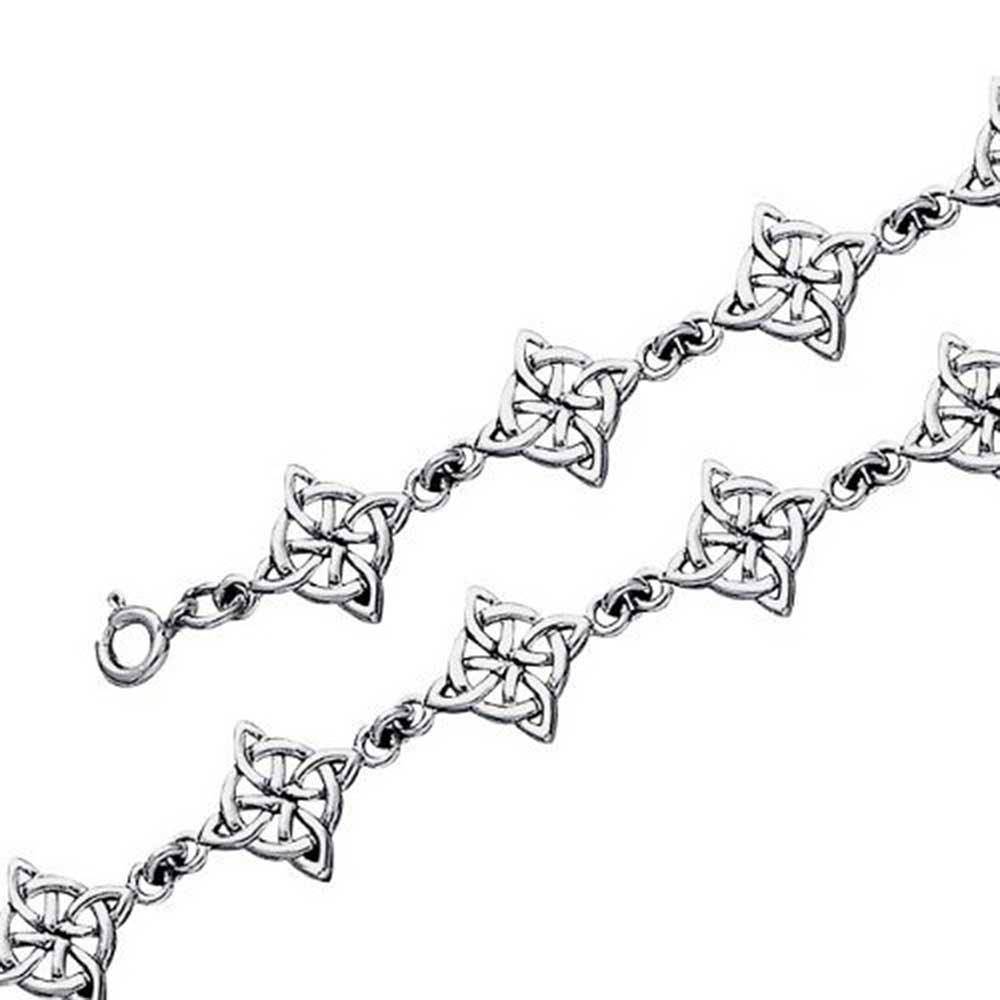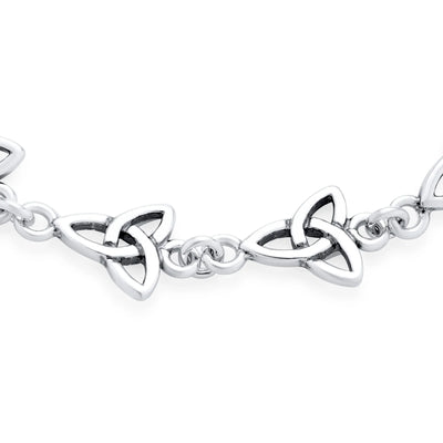 • The Celtic Triquetra holds a significant role as a cherished symbol of enduring connections. Crafted from radiant 925 silver, this captivating link bracelet features intricate Celtic trinity knot motifs. Reflecting the power of the triad, it adds an enchanting aura to any attire, boasting a timeless charm with its adorned link design.