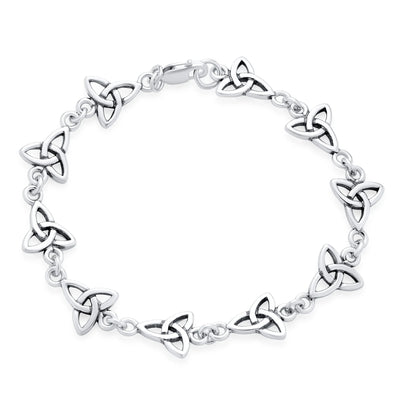 Religious Chain Link Bracelet Celtic Triquetra Trinity Knot Silver Oxidized - Bling Jewelry
