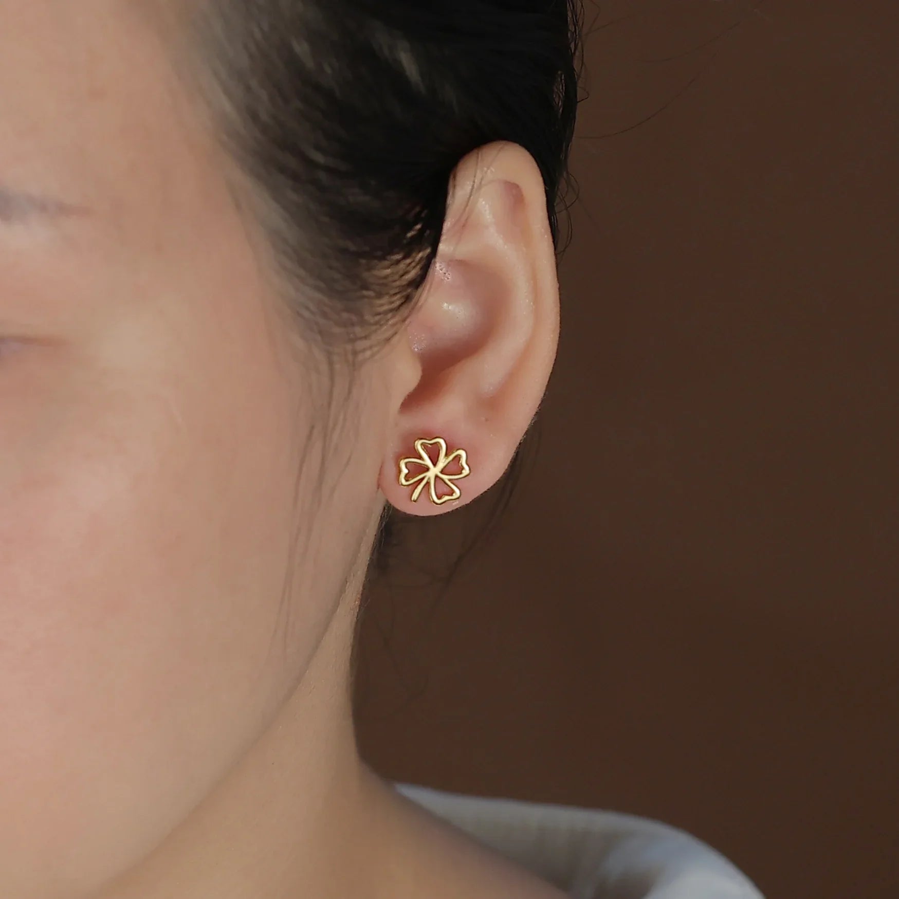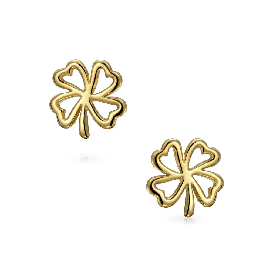 • Unveil Irish charm with our gold plated sterling silver four leaf clover stud earrings. Heart-shaped petals add a whimsical touch. Perfect for daily wear, these dainty silver studs elevate your Irish jewelry collection effortlessly.