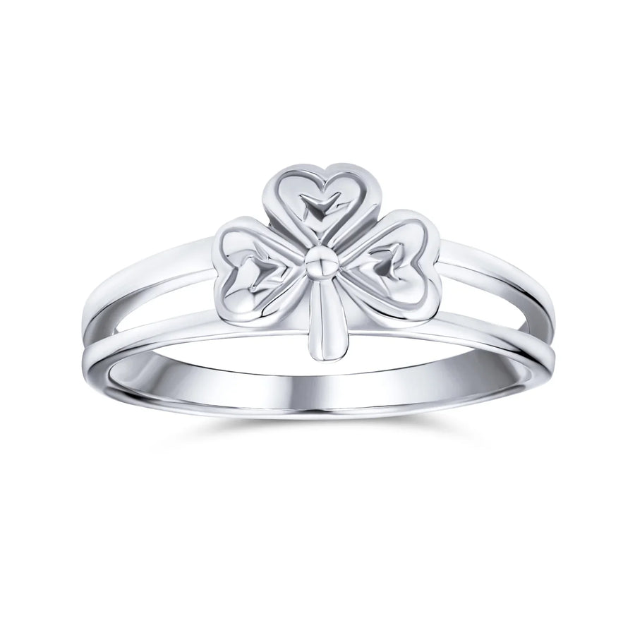 - Our sterling silver 3 leaf clover flower ring is made in an with heart shaped petals for some extra love. Flaunt a new sterling silver clover ring when you are feeling lucky and add a perfect finishing touch to any ensemble. Let the luck of the Irish be at your fingertips with some new sterling silver St. Patrick's Day jewelry.