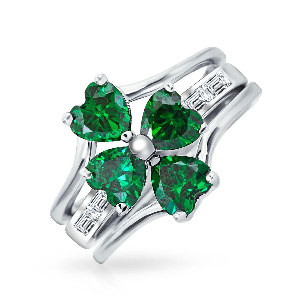 - Lucky shamrock jewelry, deeply connected to St Patrick, makes a great May birthday gift. Four leaf clover stacking rings with simulated emerald cubic zirconia stones. Perfect St Patrick's Day gift to celebrate Irish heritage. Say Erin go bragh with our green stacking ring.