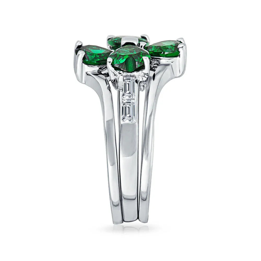 - Embrace the luck of the Irish with this 1.5mm four-leaf clover ring. Crafted in sterling silver, it features a playful shamrock design with simulated emerald CZ, perfect for celebrating your Celtic heritage.