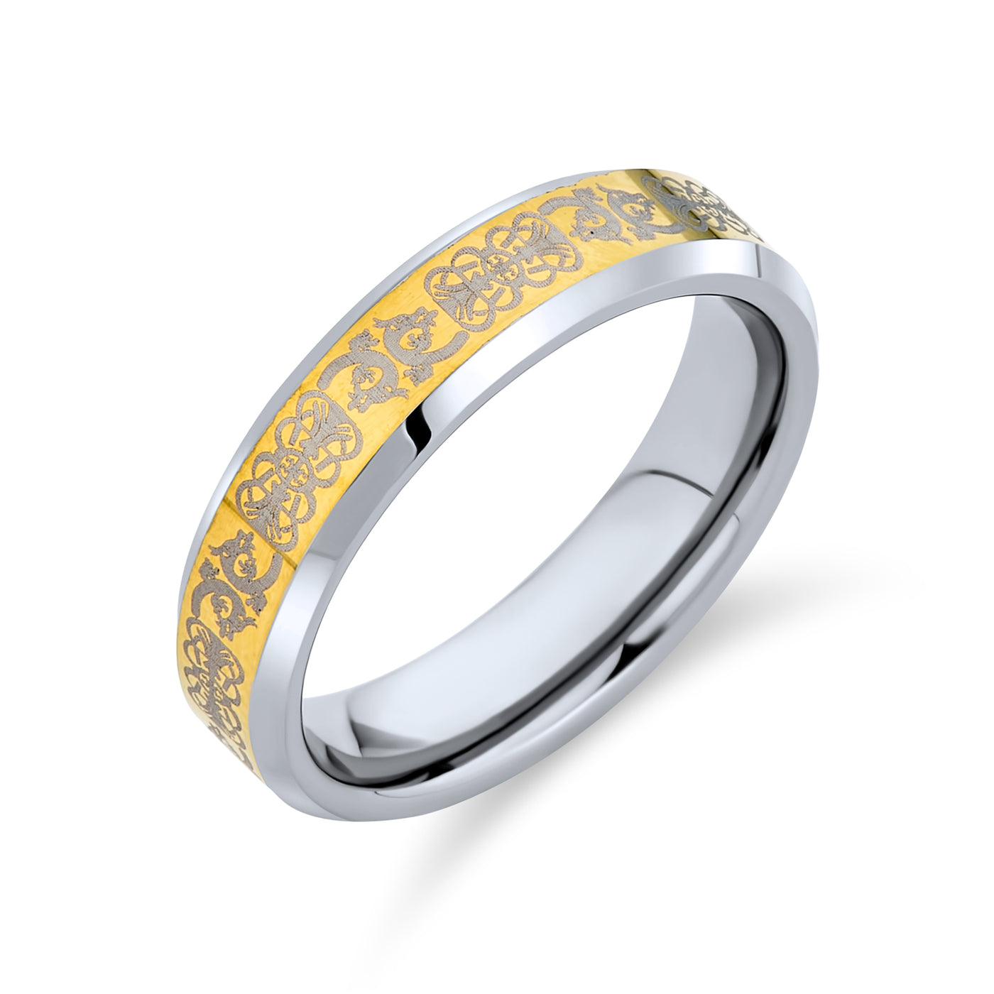 - ELEGANT DESIGN - Elevate his style with this sleek and sophisticated modern wedding band, showcasing a captivating golden Celtic dragon motif. Available in size 5.