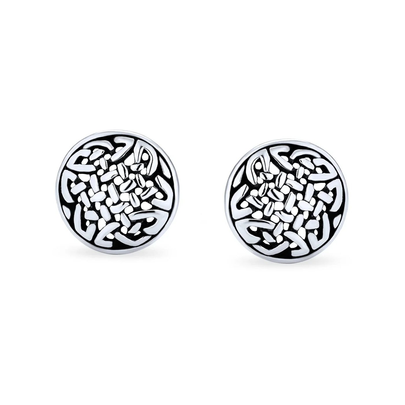 - The allure of Irish Knotwork lies in its endless loop, representing eternity. Celebrate this heritage with these two-toned, shield-styled sterling silver knot earrings. Their intricate cut-out design spans 8mm, perfect for pierced ears.