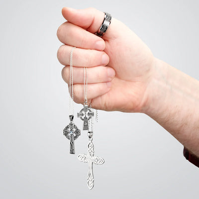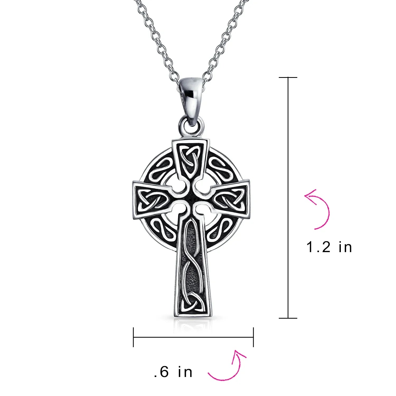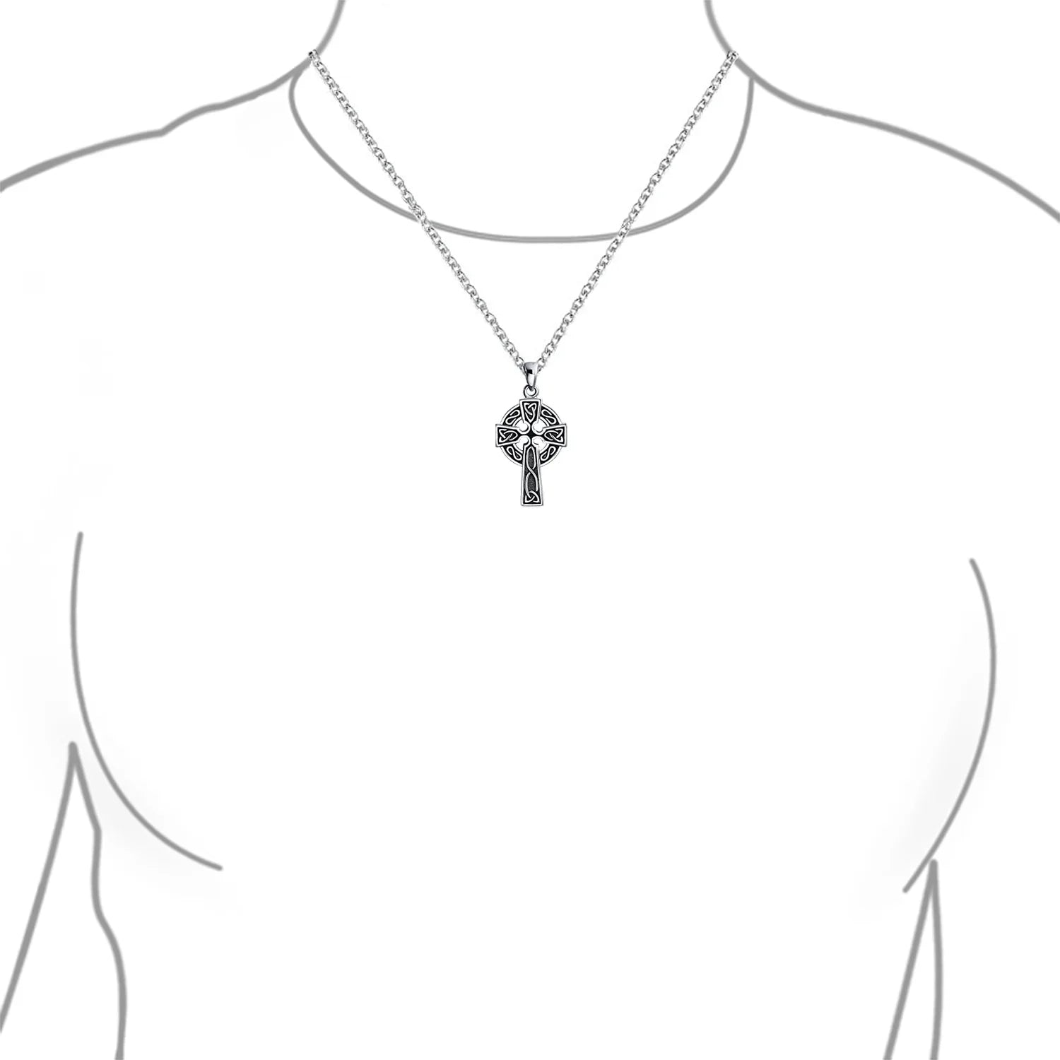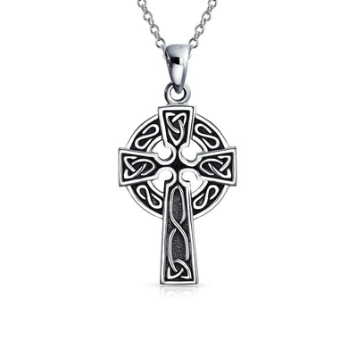- This Gothic-inspired Celtic Cross .925 Sterling Silver Pendant Necklace is a perfect accessory. The antique-style finish and intricate Celtic knots add old-world romance. The whimsical windmill-shaped cross is set against a hollow circular background. This brand-new addition to our Celtic jewelry collection suits both women and men. Comes with an 18in Rolo Chain and spring clasp. Make a fashion-forward statement with your Celtic Cross Pendant and Chain today.