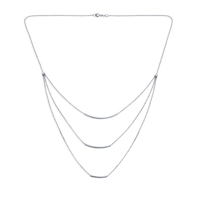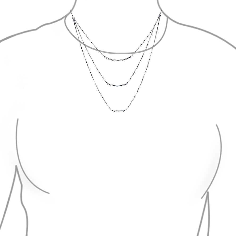 Will fall a few inches below the collarbone and allow a little more breathing room. Perfect for a low, plunging neckline or if you want to wear it over a turtleneck.