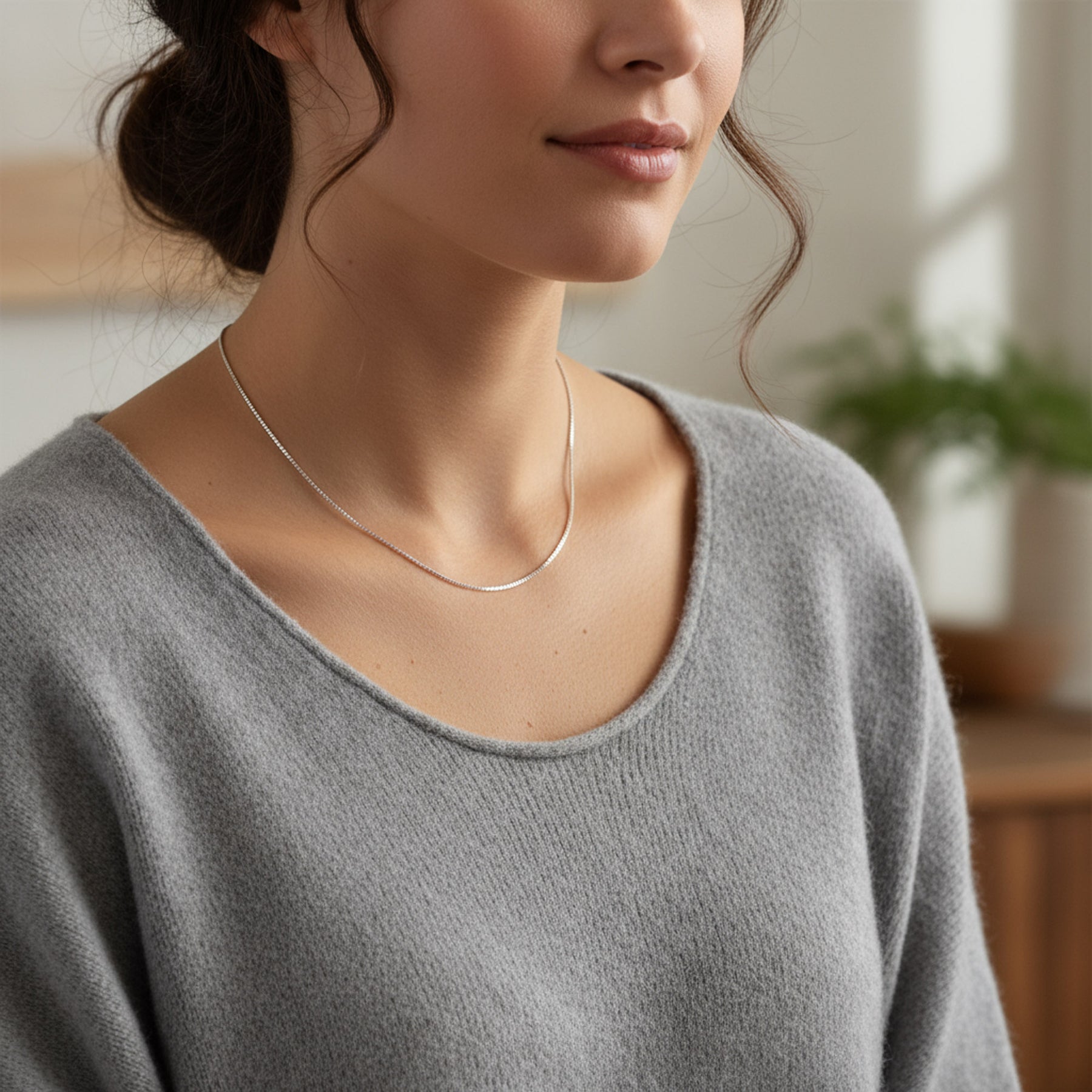 - Impress with this sleek 14K Italian rose gold box chain necklace, perfect for women. Measures 0.5MM wide. Customize with pendants. Ideal gift!
