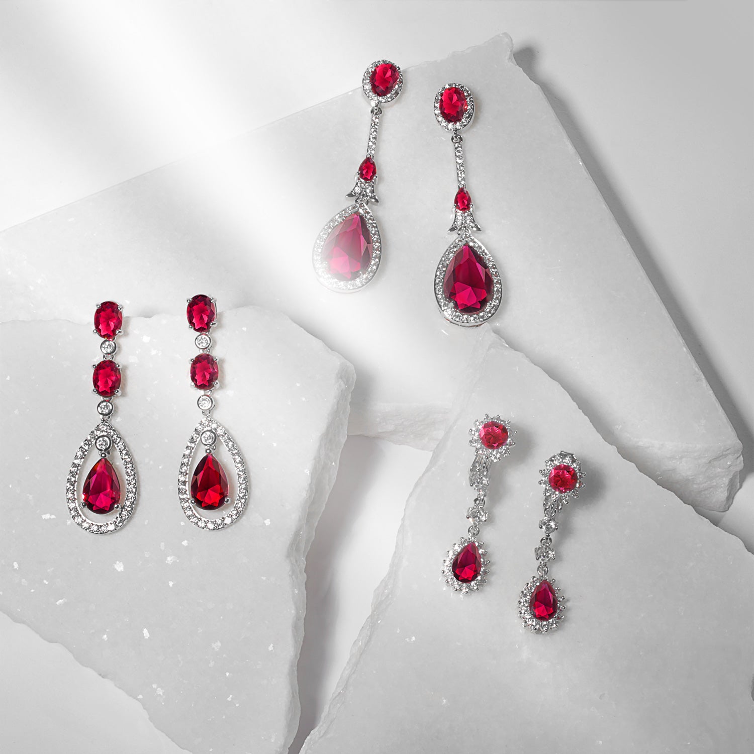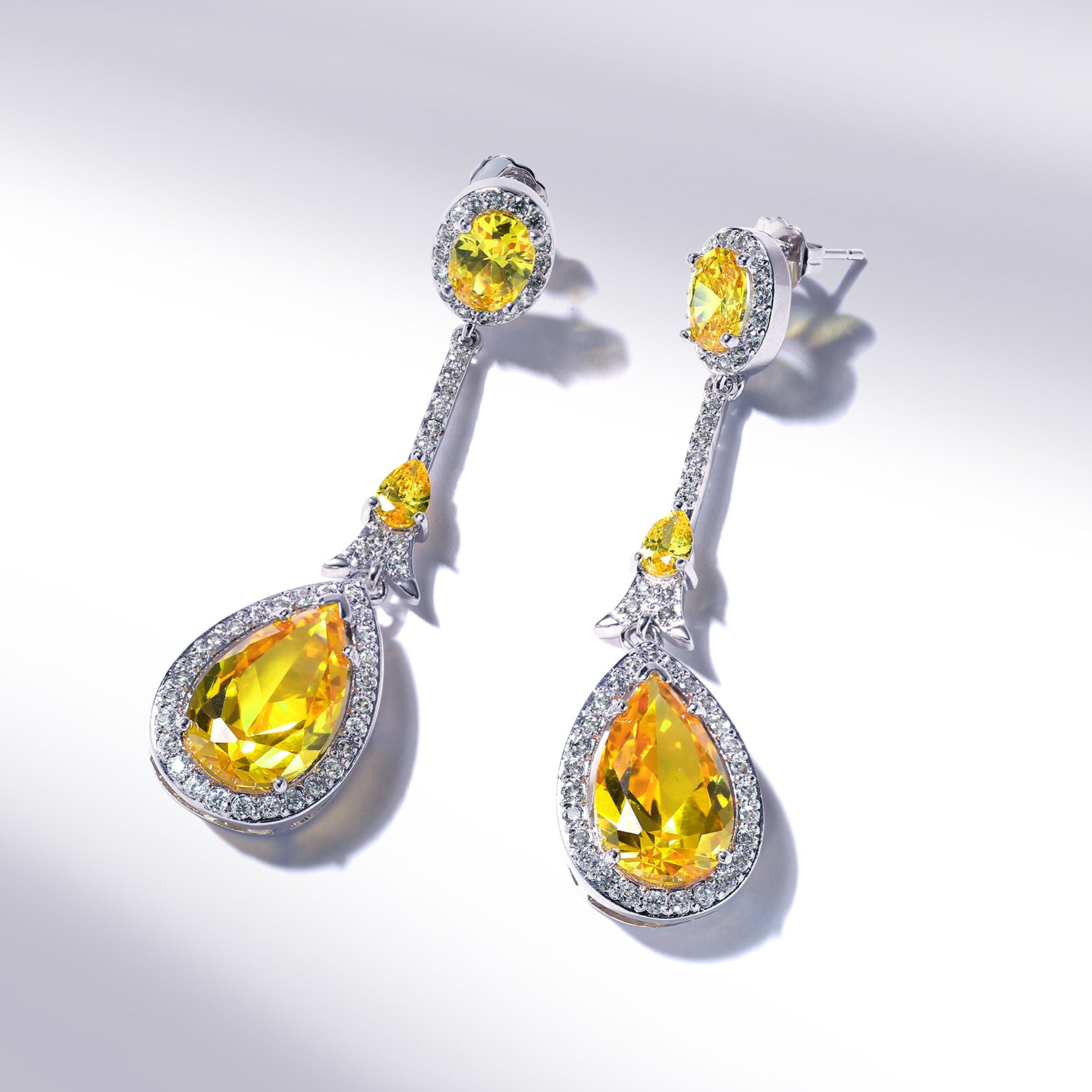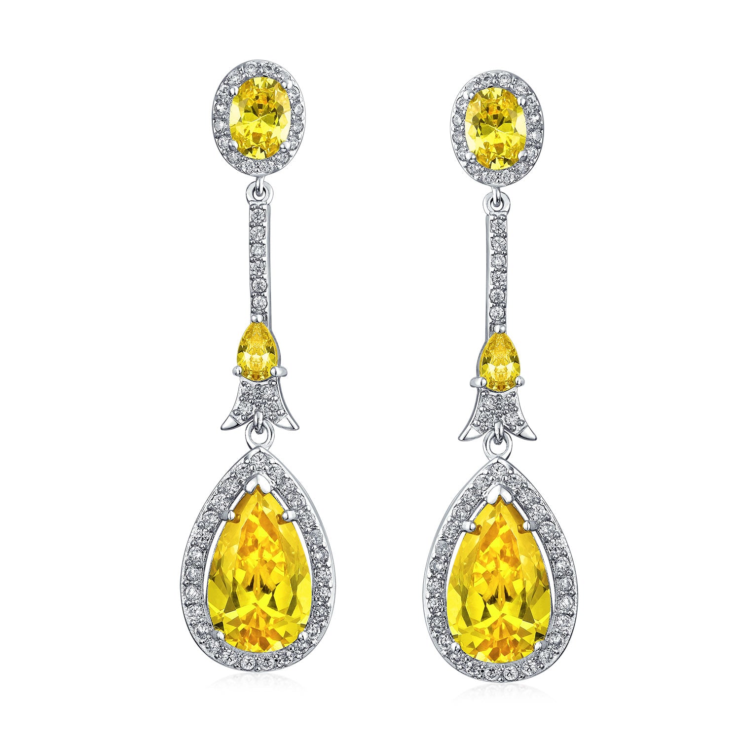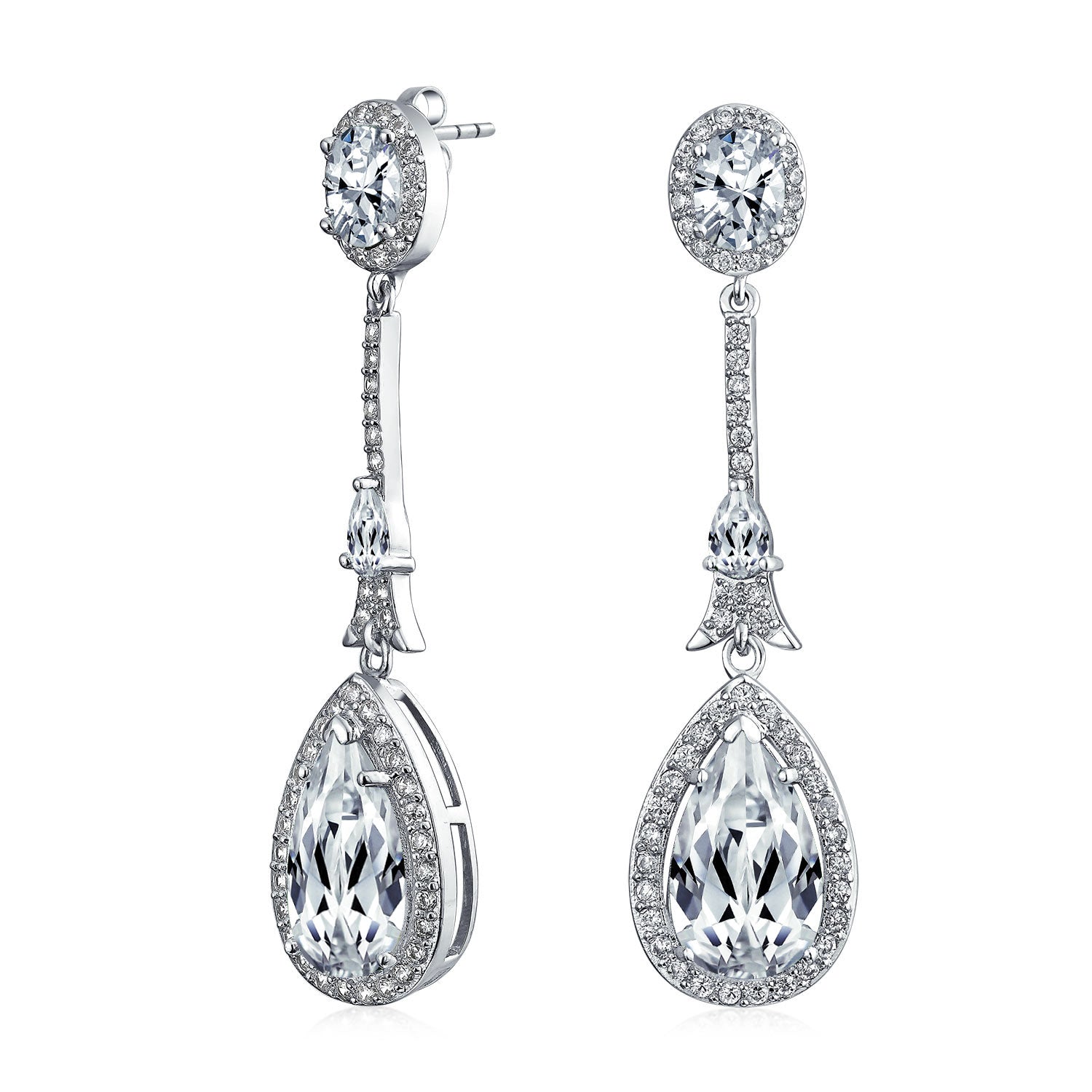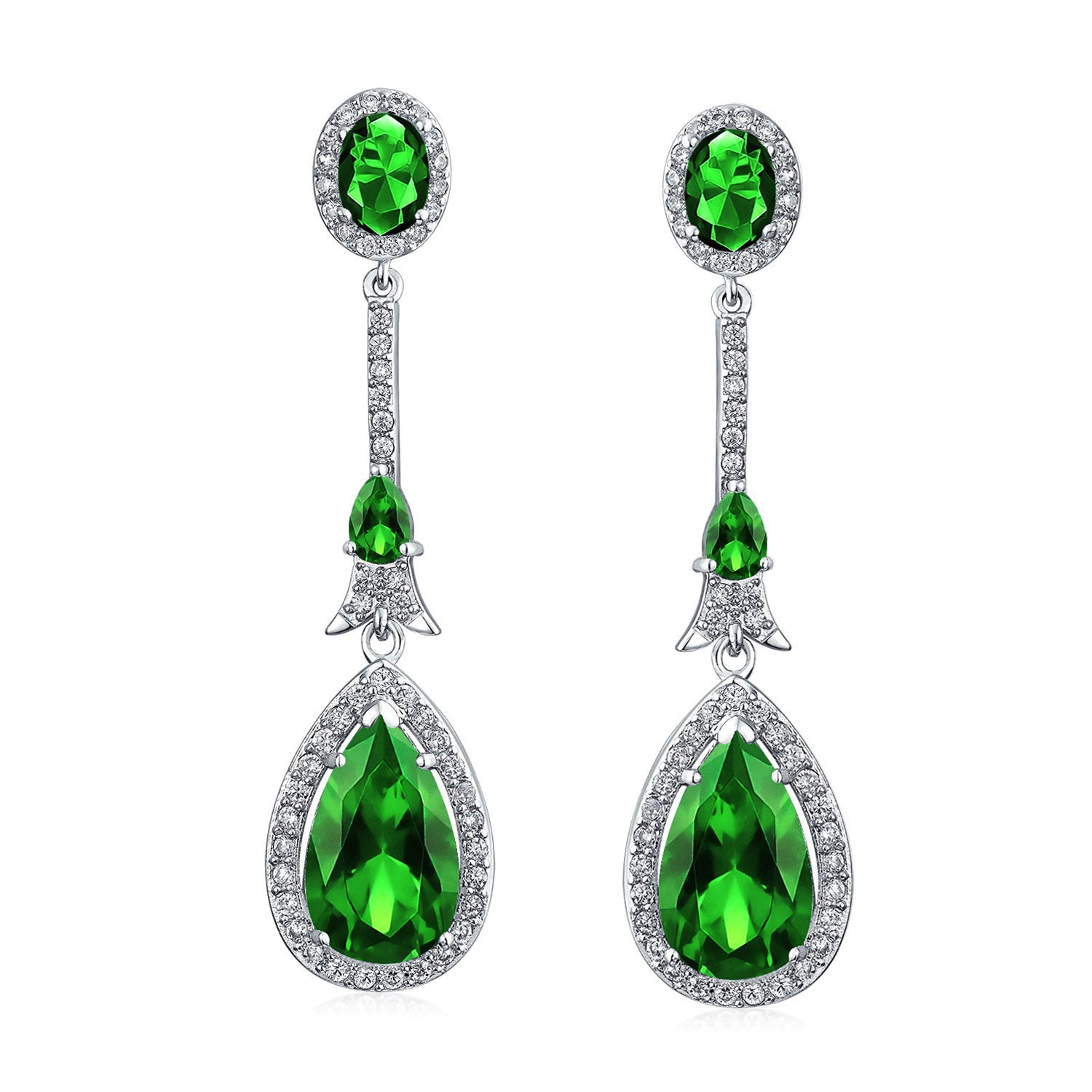 - Formal long vintage estate jewelry cubic zirconia dangling earrings with halo pear shape drops is prefect for Prom cocktail, holiday or bridal party. Comes in many simulated gemstone birthstone colors.