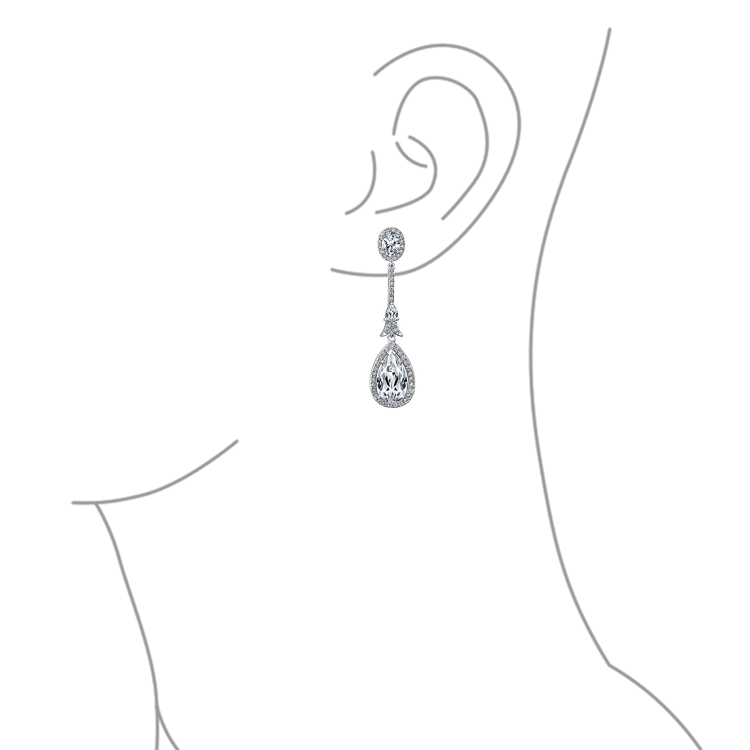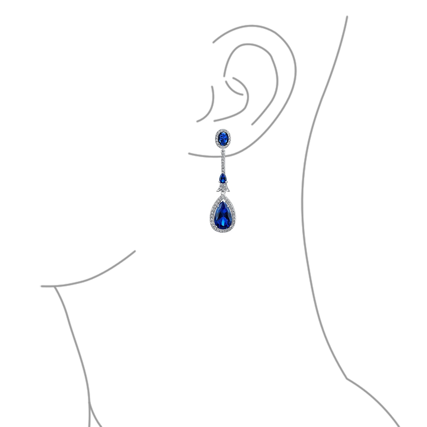 - These stunning Simulated Sapphire Chandelier earrings will be the talk of the party. Made with dazzling blue cubic zirconia, they feature an oval cut Simulated Sapphire CZ. A string of round cut CZ leads to a tiny teardrop Simulated Sapphire. The 15mm Simulated Sapphire teardrop is truly eye-catching. Oval and teardrop CZ are embellished with round cut pave CZ. Rhodium plated for a look of real or white gold. Perfect for brides as their "something blue." Delight your bridesmaids with these gorgeous earrings. Ideal for September birthdays. For pierced ears only.