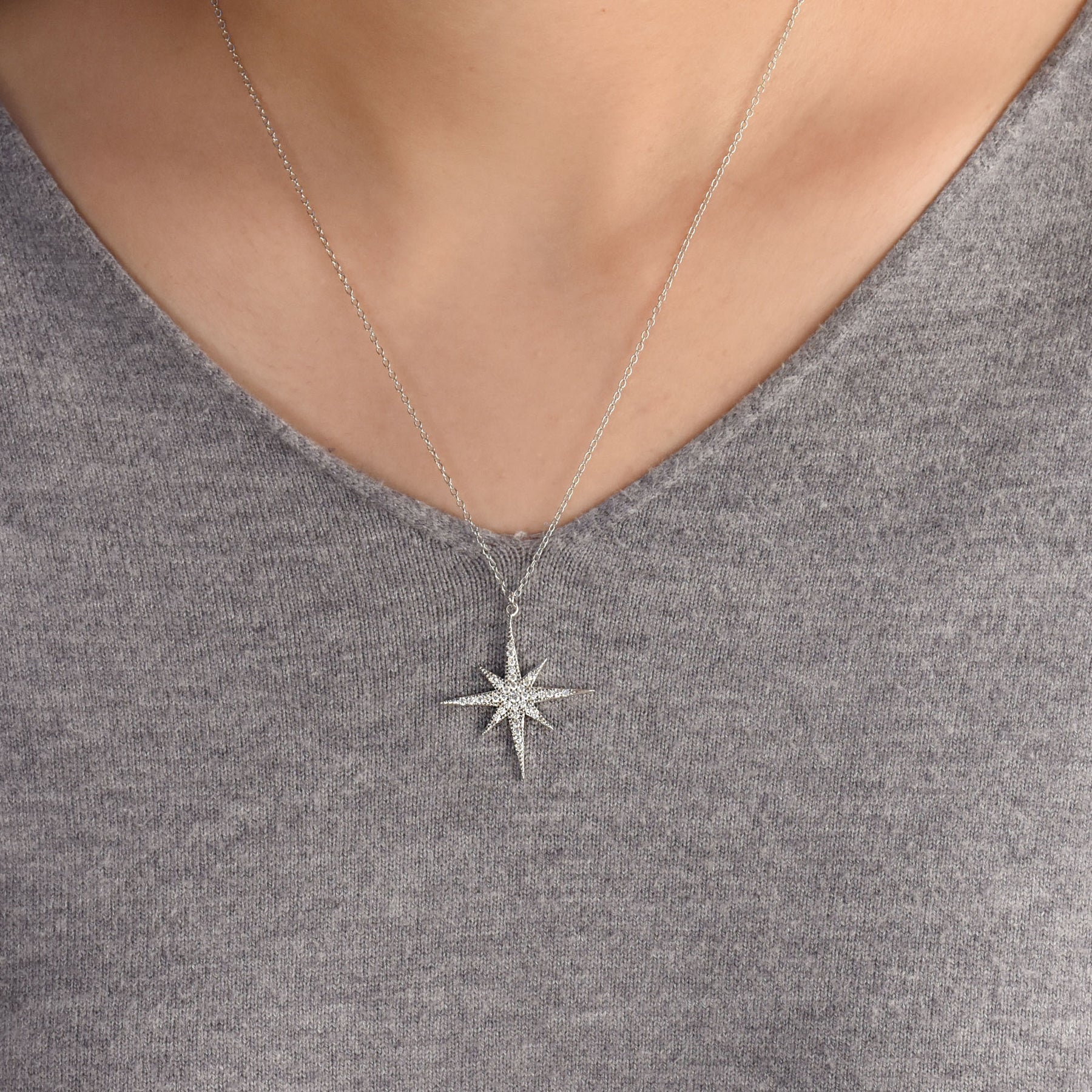 - Captivating Design: Elevate your style with this stunning .925 silver pendant necklace. Featuring a celestial star pendant adorned with shimmering CZs, suspended from a lustrous cable chain, it adds mesmerizing beauty to any ensemble.