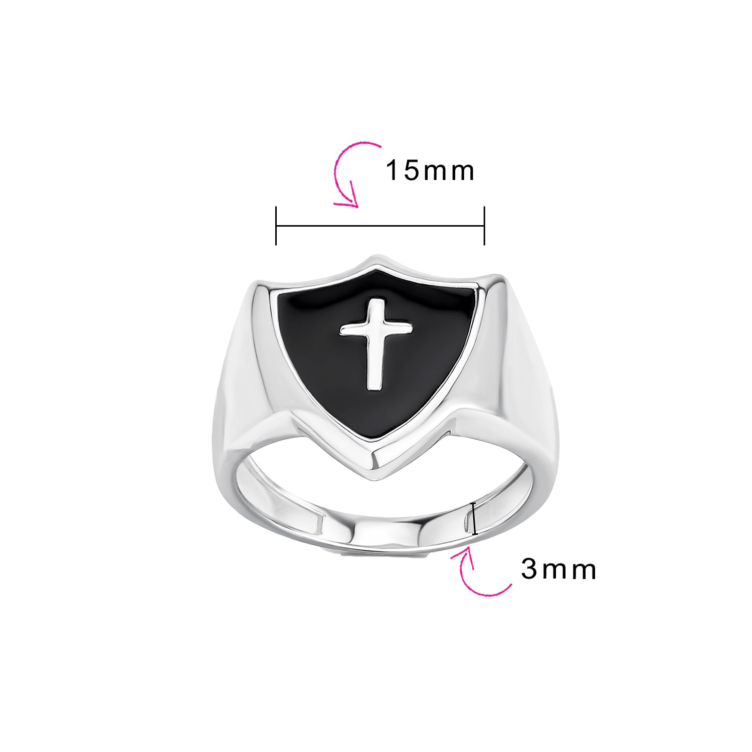- Discover our exquisite Shield shape cross ring, blending simplicity and elegance. Crafted in 925 sterling silver with a captivating inlay cross. The wide band ensures a luxurious, comfortable fit. Perfect for men and women of all ages who value fashion and spirituality. This religious jewelry piece is an exceptional Christmas gift. Embrace style and faith with this stunning sterling silver cross ring.