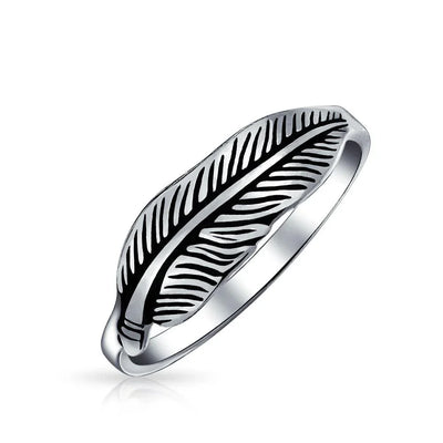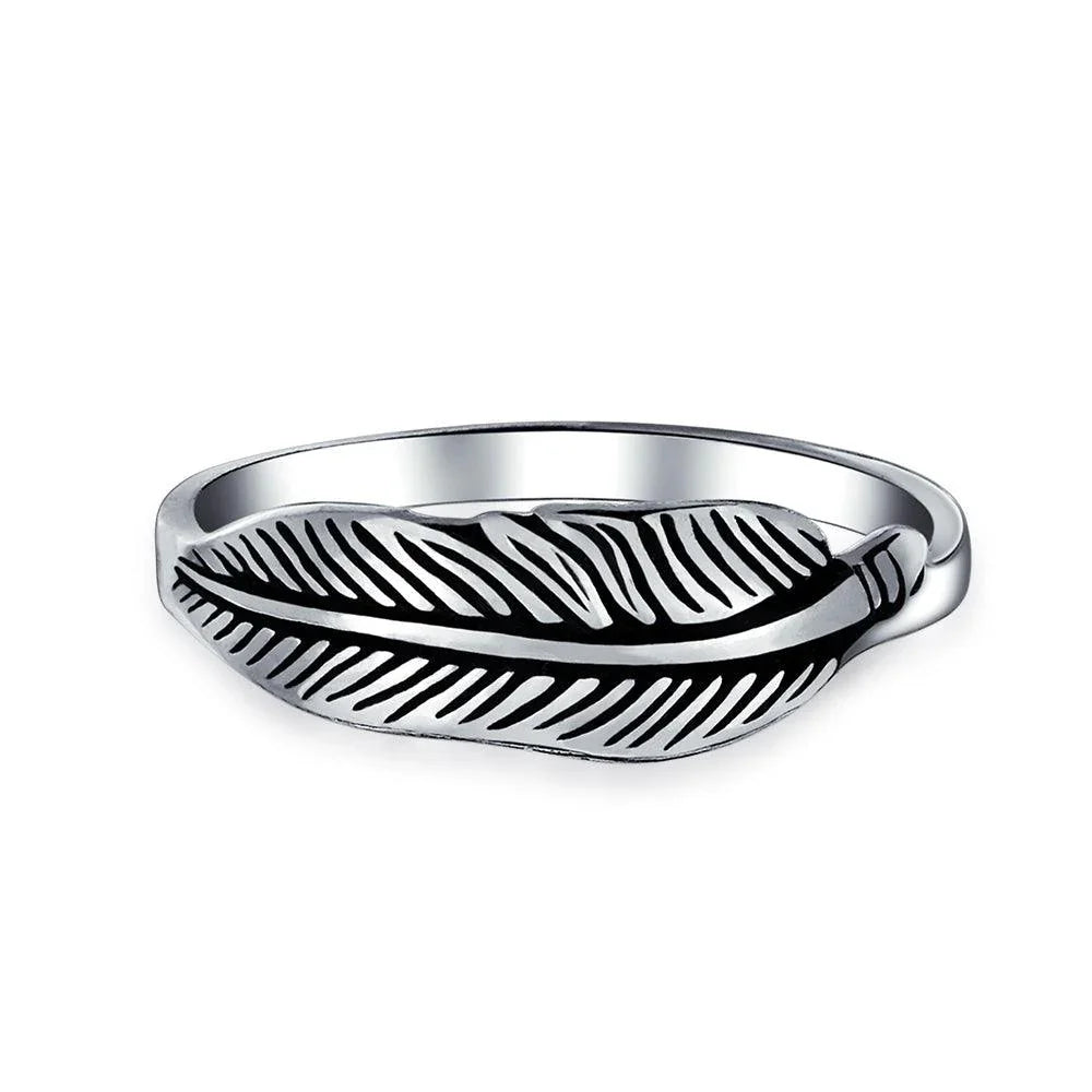 Southwestern Boho Feather Leaf Band Silver Ring Oxidized Sterling Jewelry