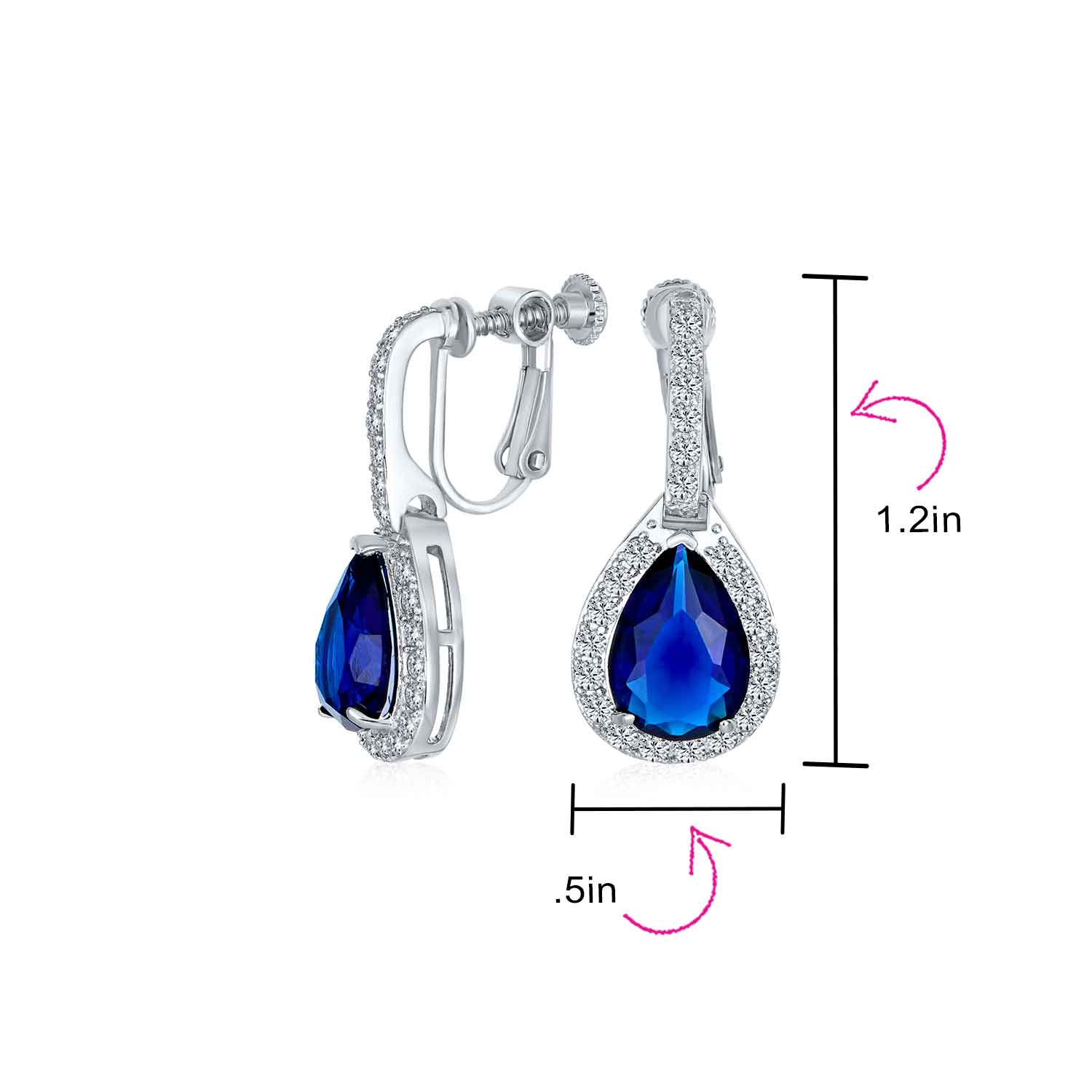 - For Non Pierced Ears, Clip On, Measure: 1.25 Inch L x 0.50 Inch Wide Center Stone 7 MM x 12 MM, Weight: 8.6 Gram, Material: Anti-Tarnish Rhodium Plated Brass, Cubic Zirconia, HYPOALLERGENIC - Lead free Nickle-free.