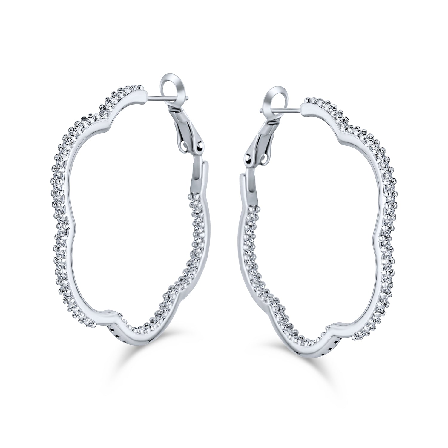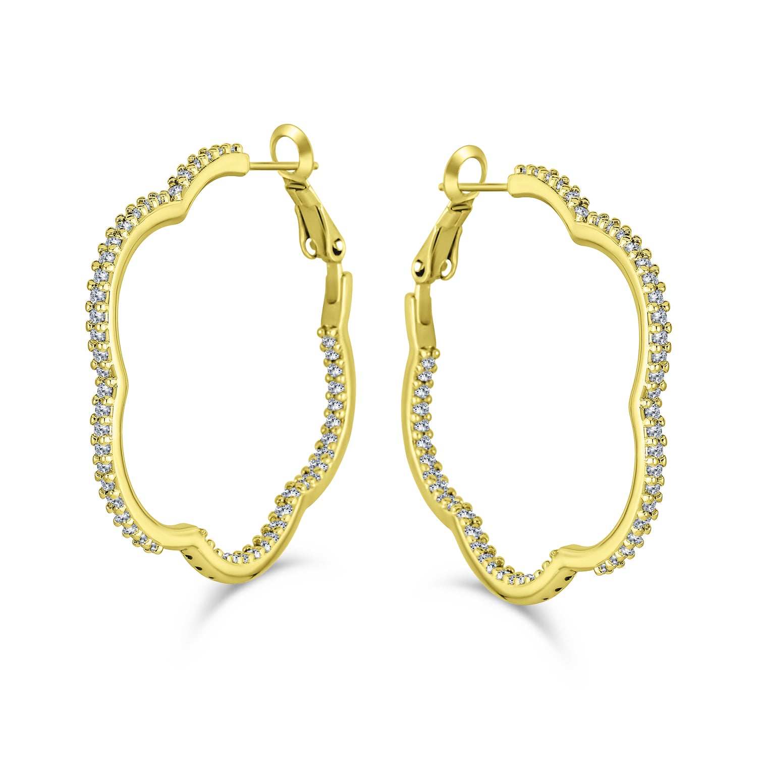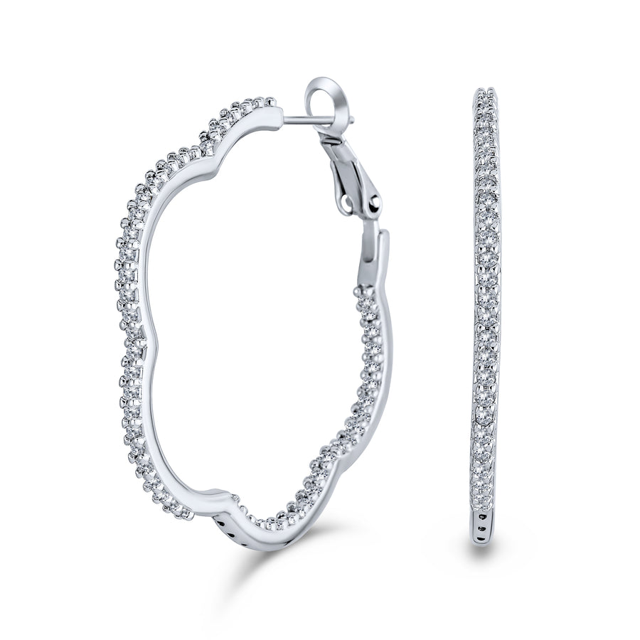 - Everyone loves gold-toned flower earrings, and our cubic zirconia inside-outside hoop earrings offer a floral look without being frilly. Medium hoop earrings are essential for any jewelry collection. Our clover flower hoop earrings are gold-plated and adorned with tiny, sparkling pave CZs, creating a spectacular vibe.