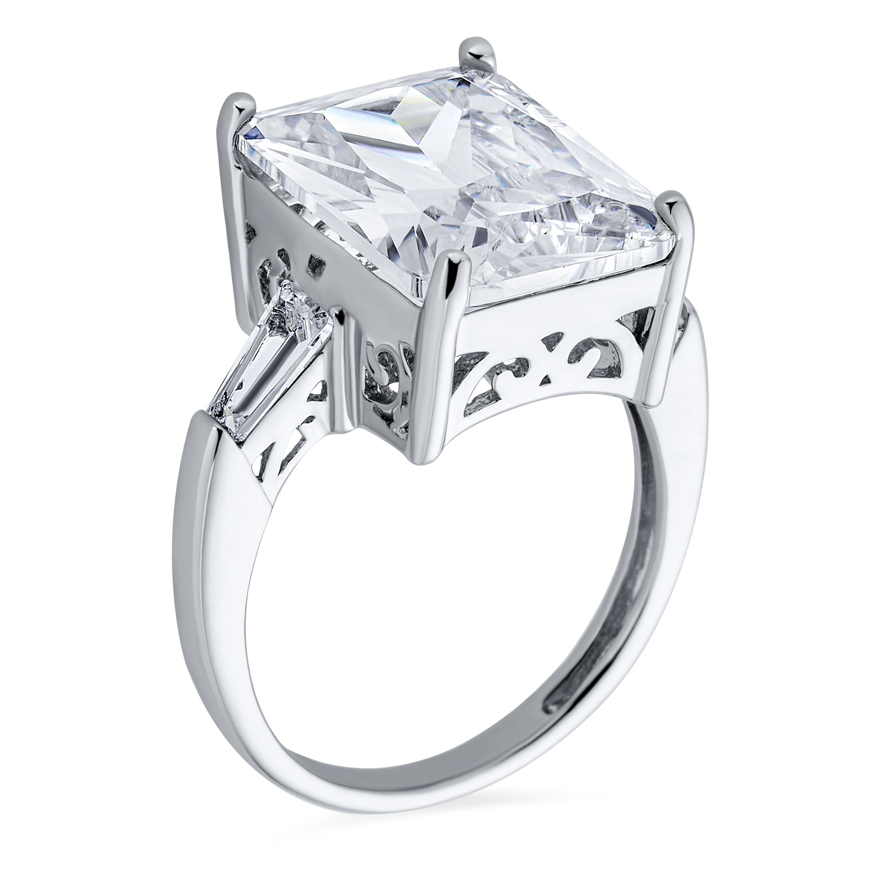 - Make a bold impression with this Art Deco-inspired sterling silver ring. Featuring a large 10CT square princess-cut CZ center stone and stepped baguette side stones, it’s a glamorous cocktail piece perfect for special occasions or standout everyday style.