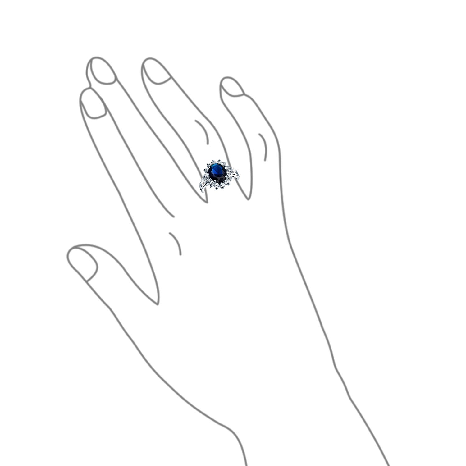 - Enchant your beloved with this exquisite sterling silver engagement ring, showcasing a stunning 5ct simulated blue sapphire oval center stone, elegantly accented by sparkling CZ crystals in a regal design.