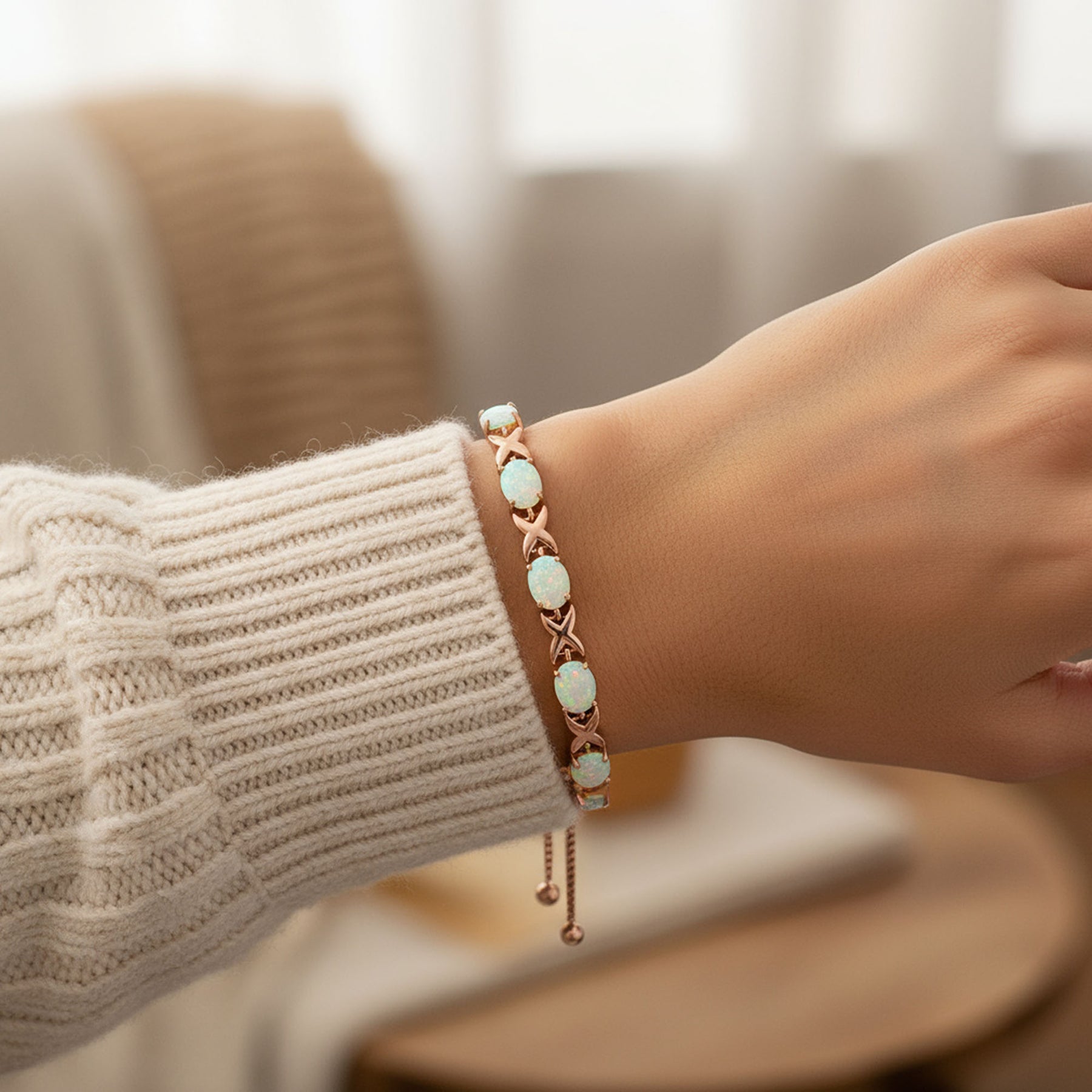 - Add a love to your wrist with this simple and elegant opal adjustable pull-string Bolo Bracelet. Fashionably made in sleek 925 sterling silver, this bracelet features vintage style set oval-shaped stones. Measuring to 7 inches, this is a secured pull-string bracelet and is crafted of fine 925 sterling silver and it adjusts to fit your wrist. This Bolo Adjustable Bracelet is modern looking classic style which make it perfect to wear on any occasion and it suits any attire be it day time wear or evening wear. Purchase this bracelet for Women, Teens and for October born Birthstone Jewelry.