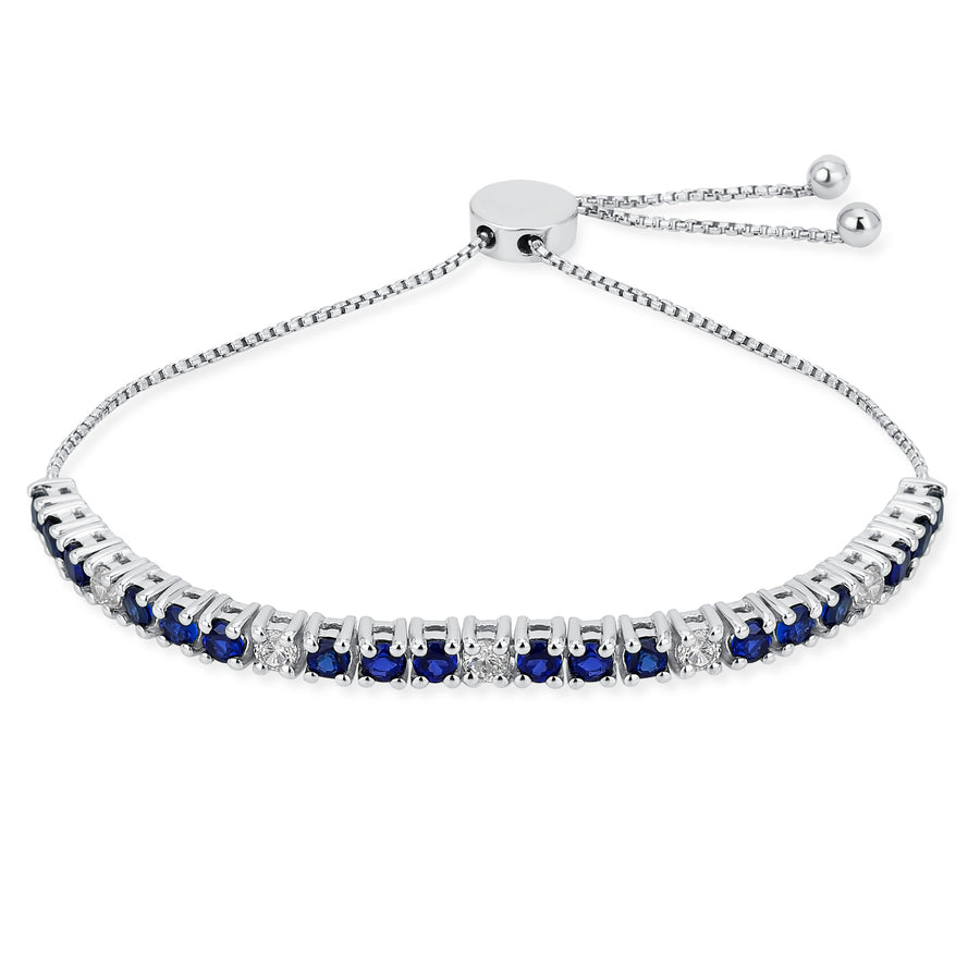 - BOLO STYLE -This bracelet features alternating prong set round-shaped created blue Sapphire and shimmering alternating white zircons. The bolo slide bracelet exudes elegance and sophistication offering a perfect fit. The pull string design ensures a secure and comfortable wear.