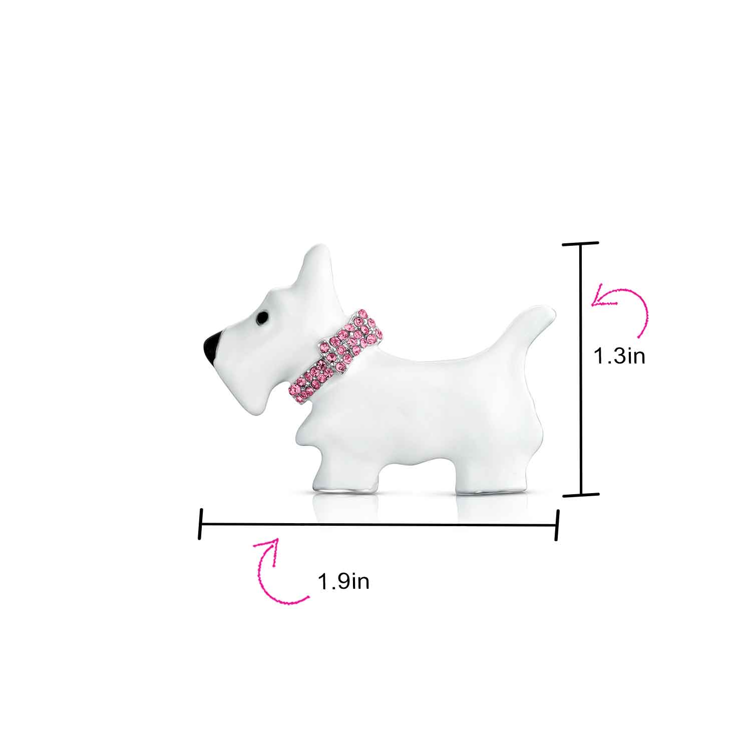 - For Westie lovers, this charming brooch pin is a must-have. Featuring a West Highland White Terrier with enamel details and a sparkling crystal collar. Perfect for blouses, sweaters, scarves, hats, and more. Add playful elegance to your style.