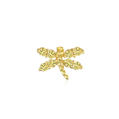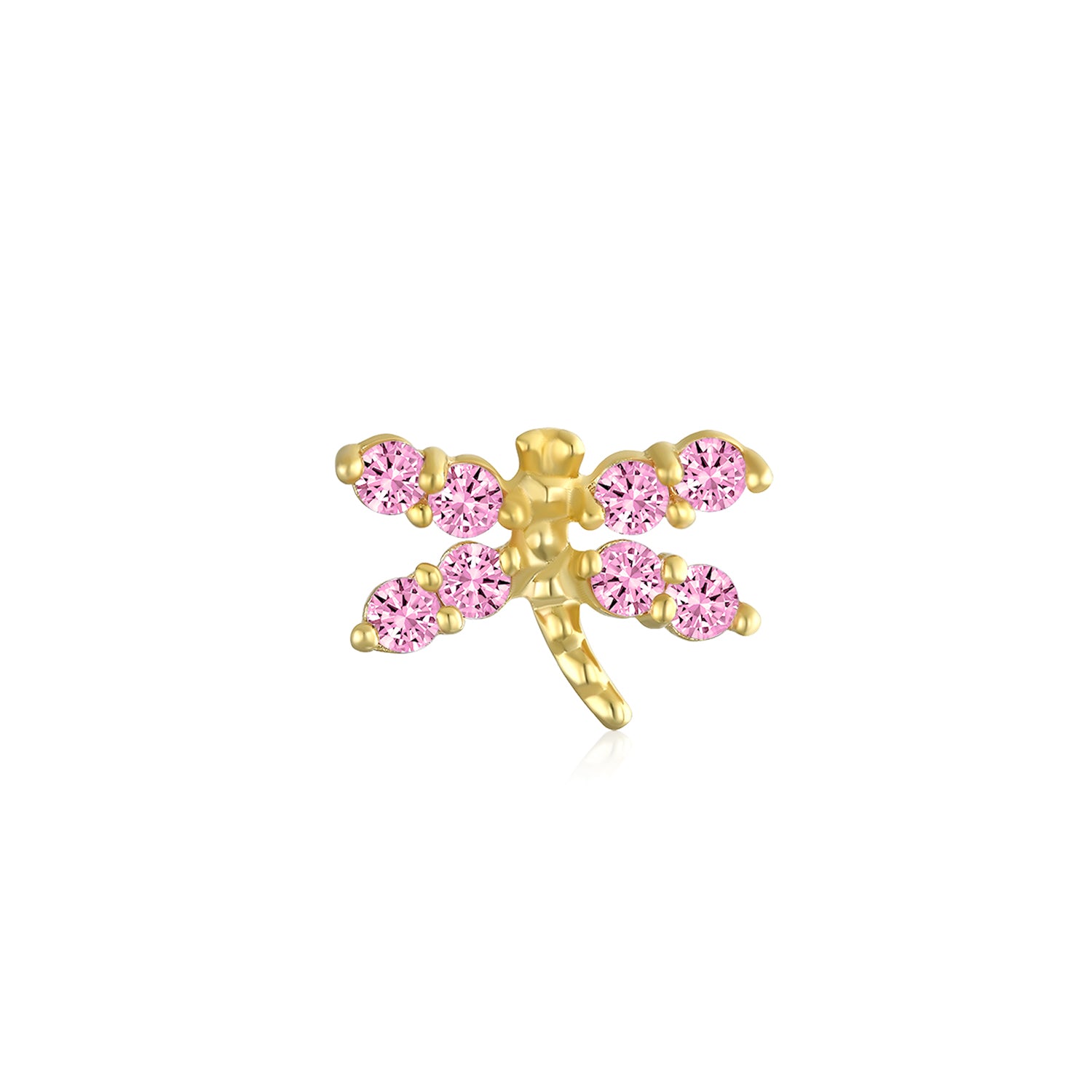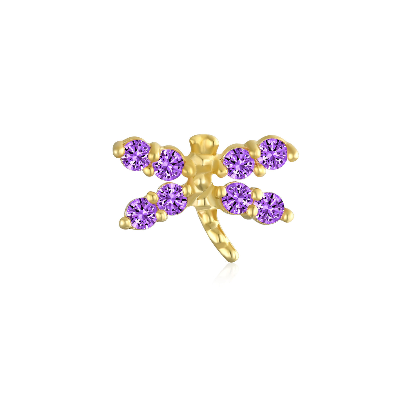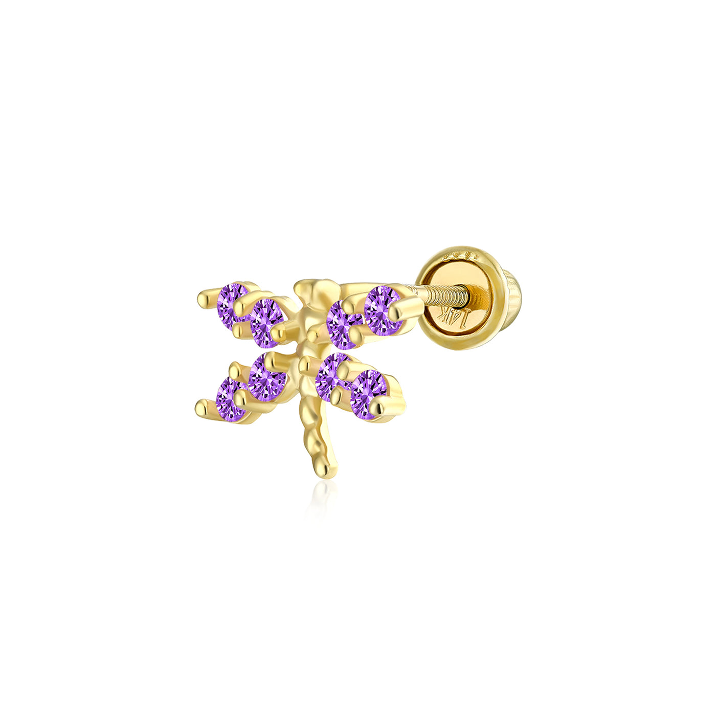 - Celebrate her August birthday with charming 14K gold CZ dragonfly stud earrings. Featuring simulated Peridot birthstones, they sparkle beautifully. Perfect for a young girl's first earrings, with a secure safety screwback. Add color to her jewelry collection with these adorable dragonfly studs. A delightful gift she'll cherish for years.