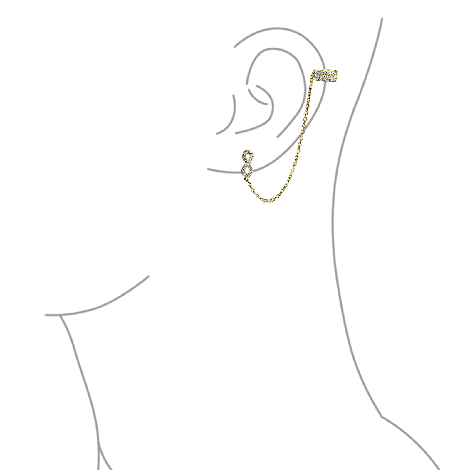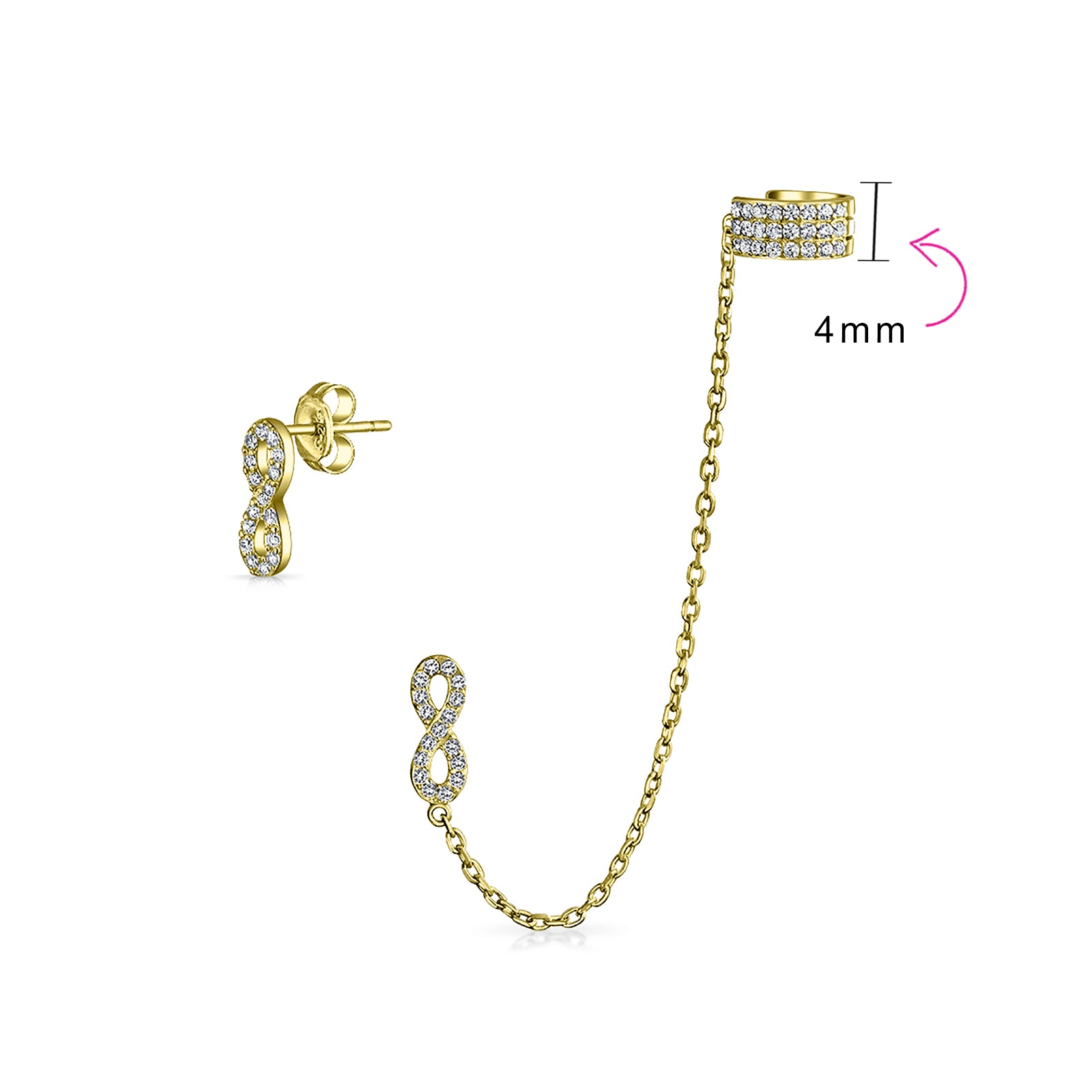 - Discover endless reasons to wear this earring cuff combo. Sterling silver studs feature an infinity symbol. One stud connects to an ear cuff, adding a rebellious touch. Shimmering cubic zirconia stones accent your ear from every angle. Don't miss the latest trend in women's earrings.