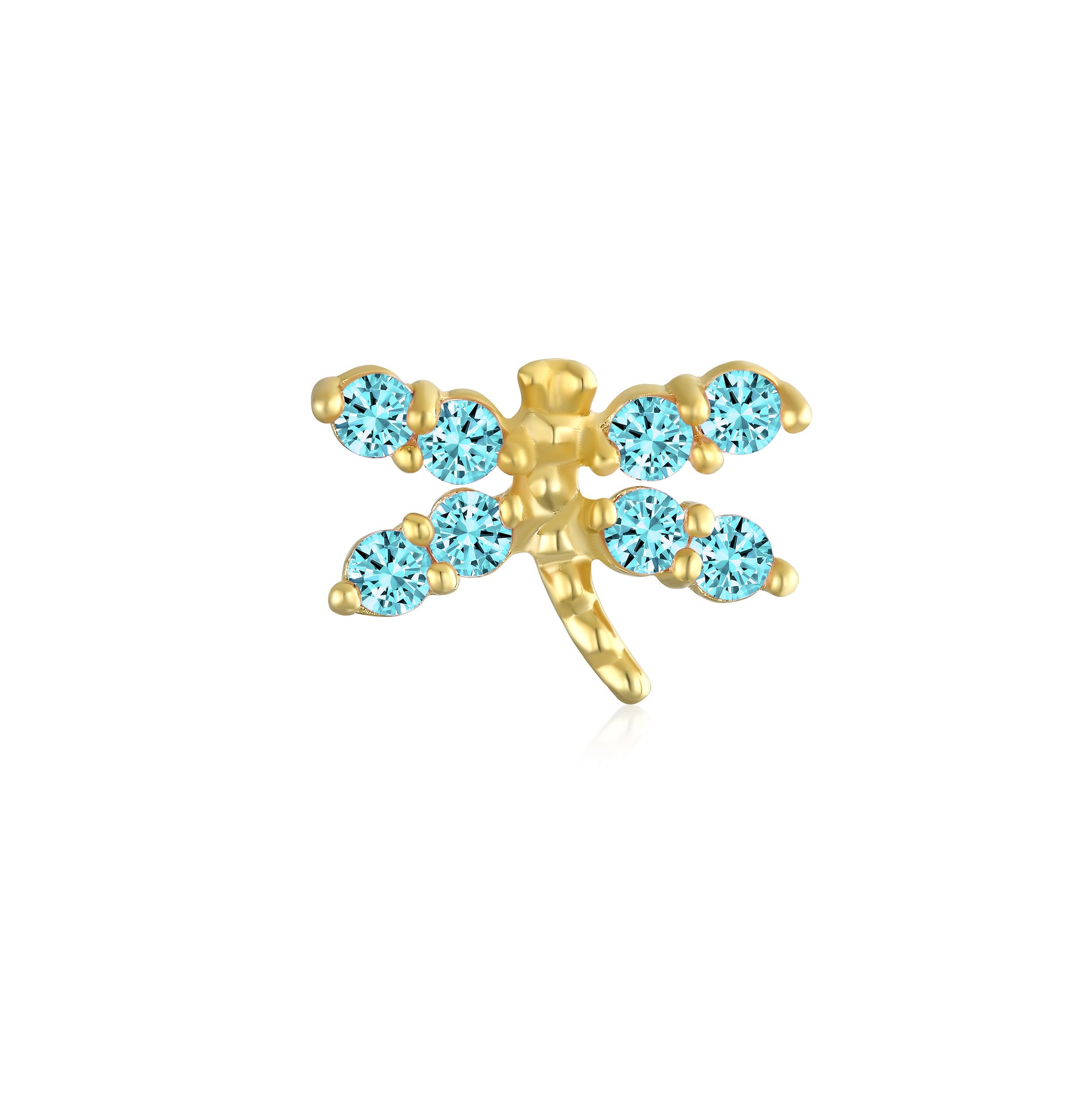 - Celebrate her August birthday with charming 14K gold CZ dragonfly stud earrings. Featuring simulated Peridot birthstones, they sparkle beautifully. Perfect for a young girl's first earrings, with a secure safety screwback. Add color to her jewelry collection with these adorable dragonfly studs. A delightful gift she'll cherish for years.