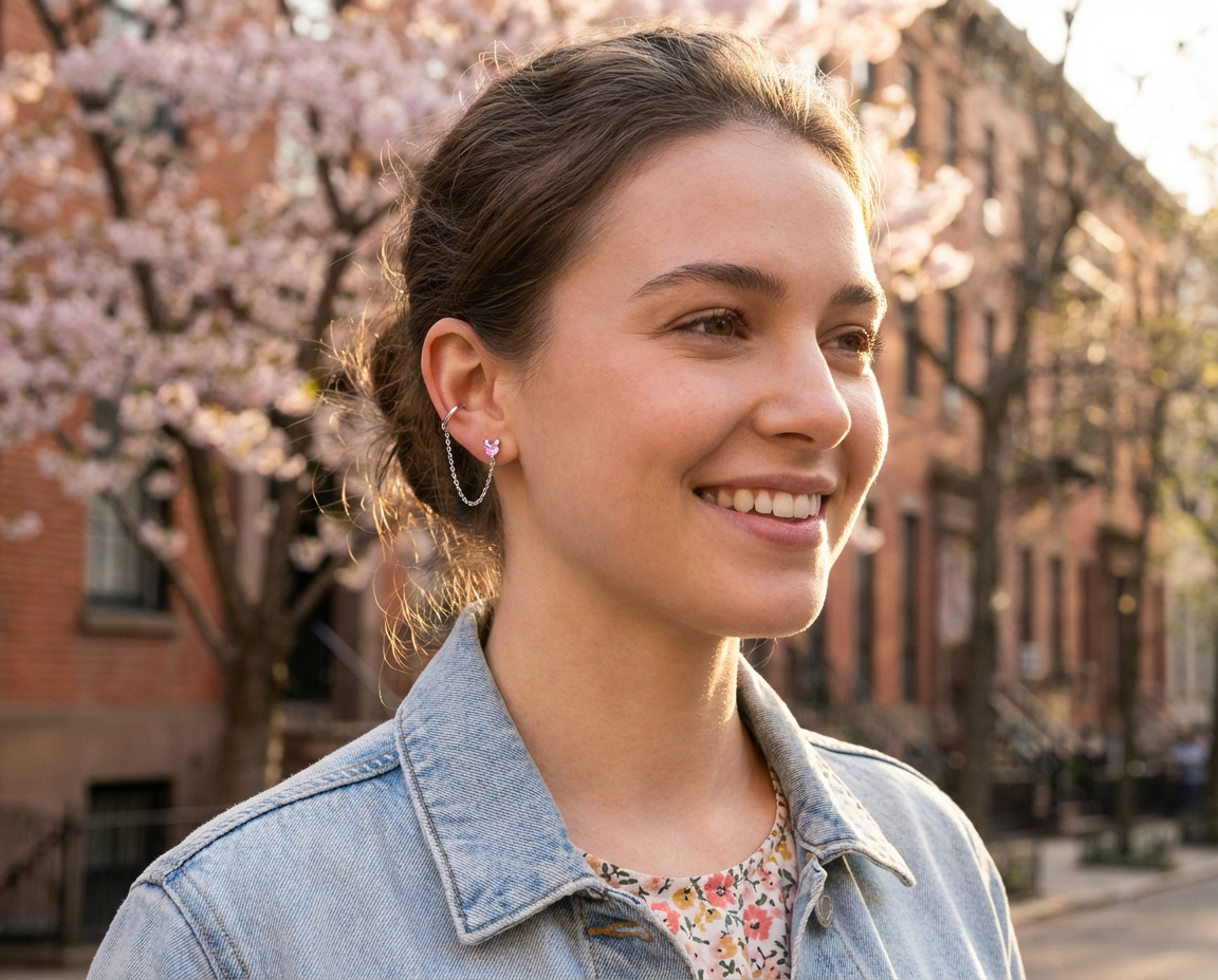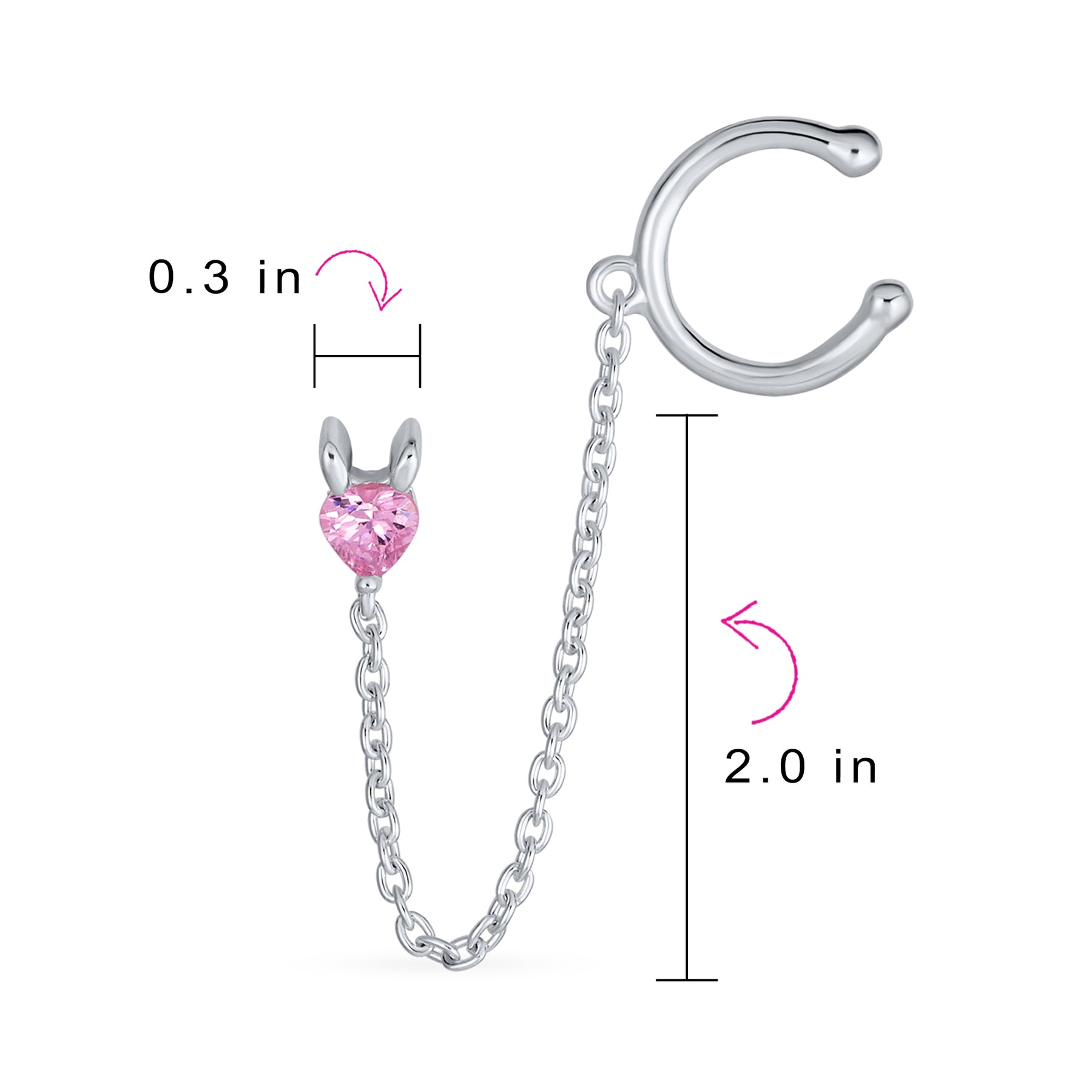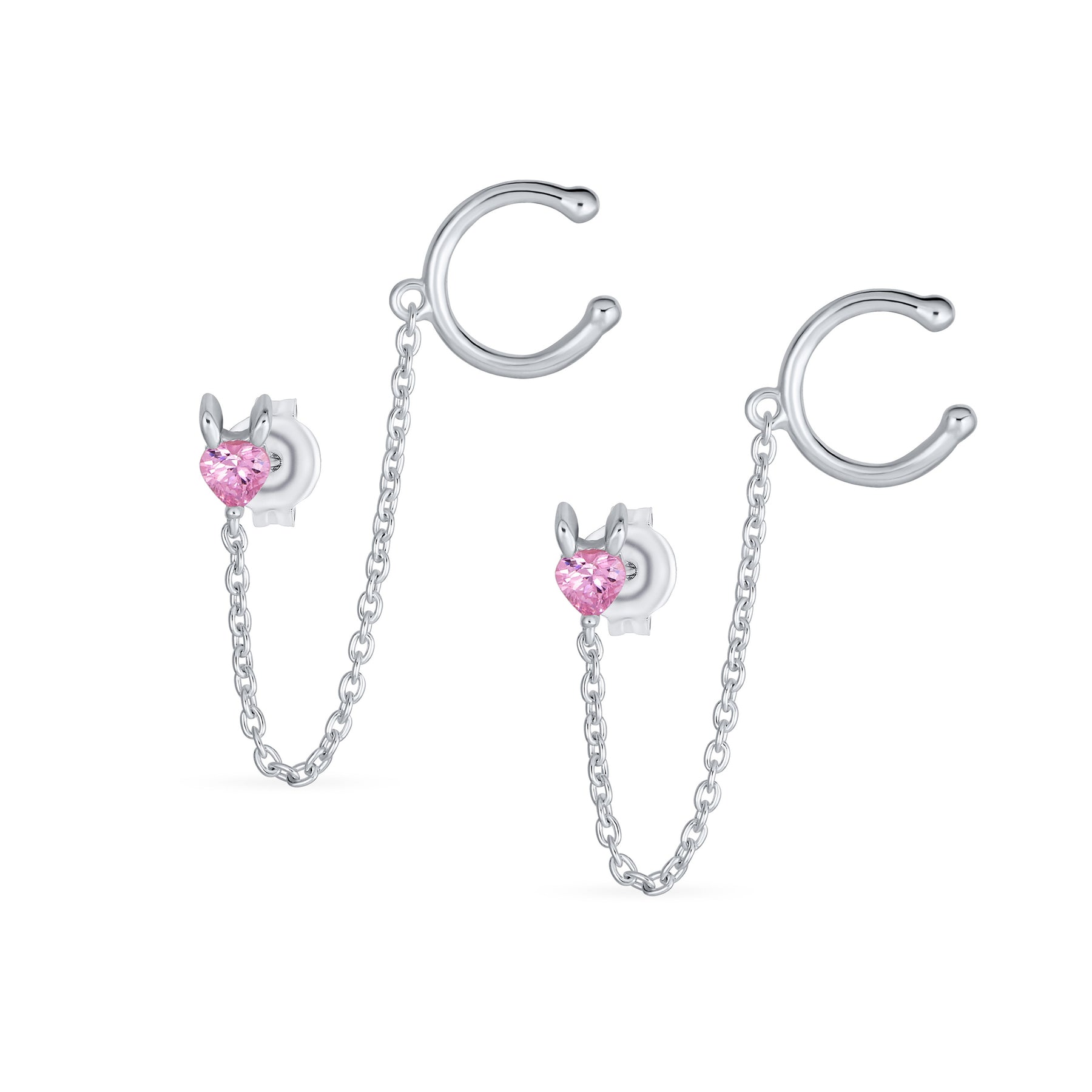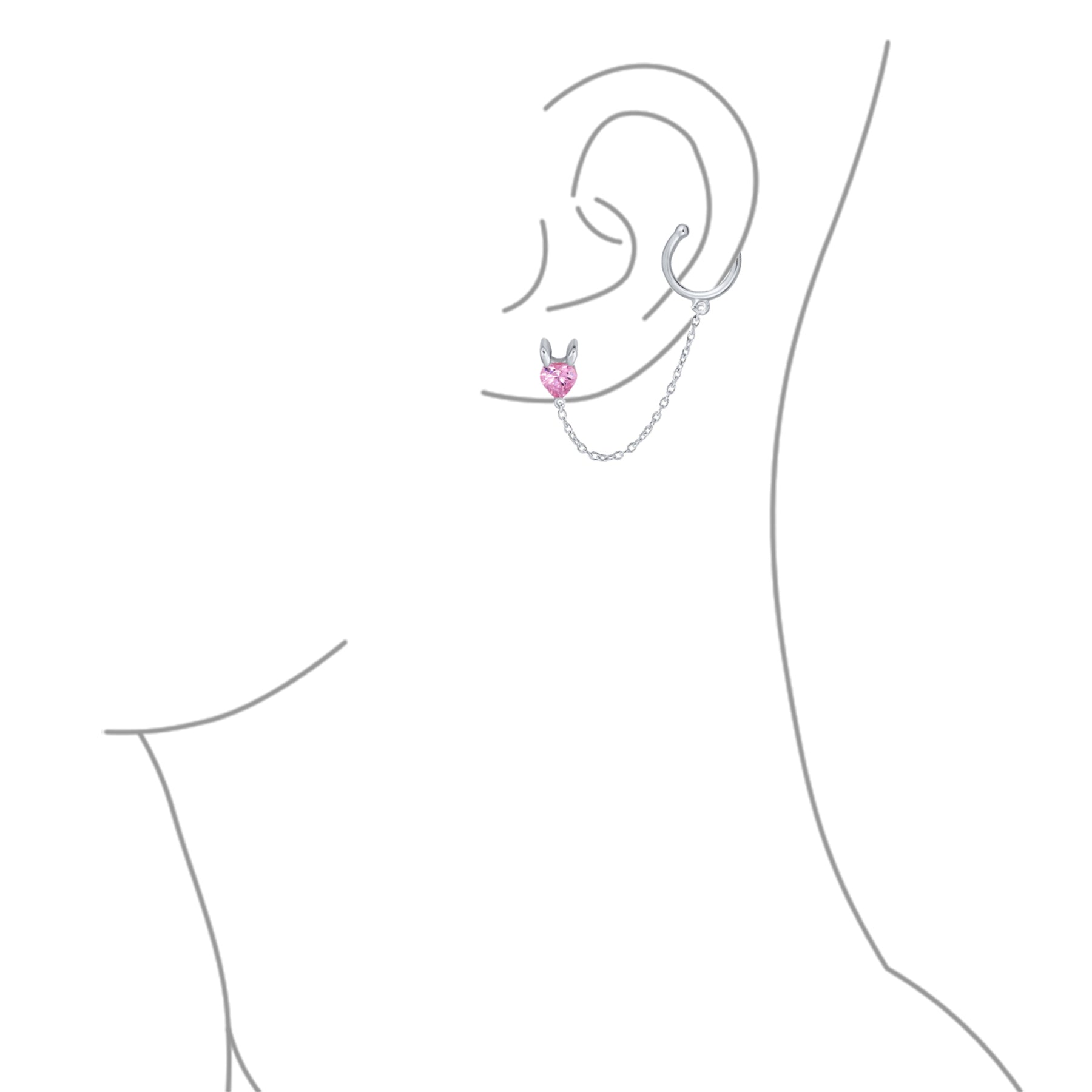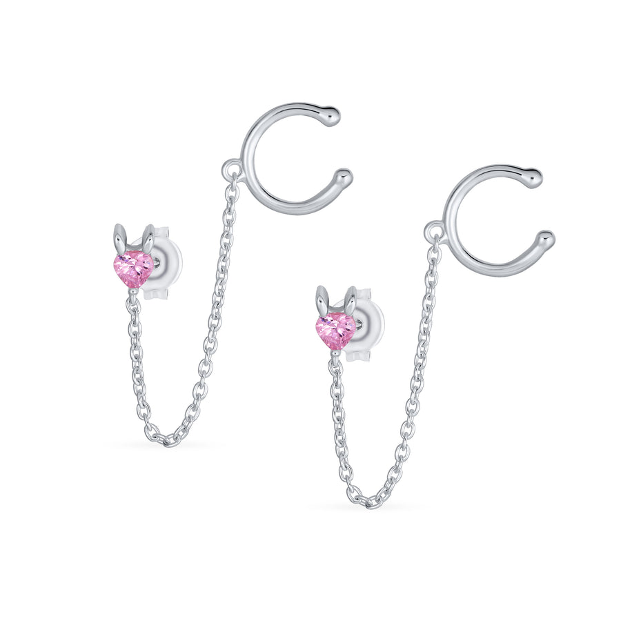 - For a Mini heart with bunny ear prongs is a cute choice for you buff in your life. Featuring a simple cartilage cuff and a chain linked to the pink cz heart for the same earlobe. Dainty asymmetric cartilage heart earring is the prefect choice for the fun loving trendy fashionista in you life.