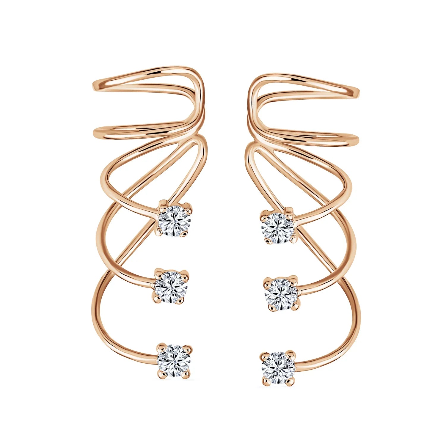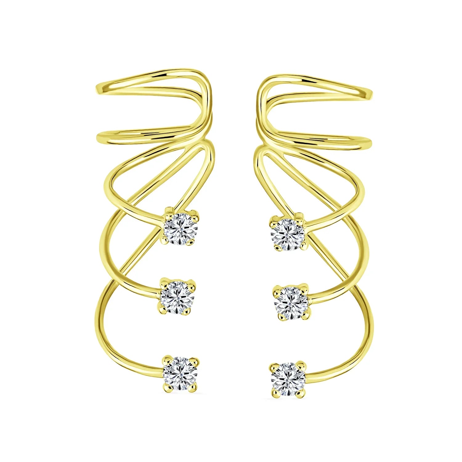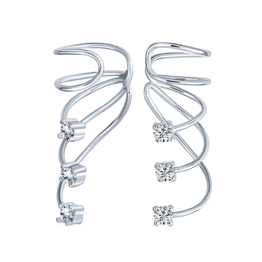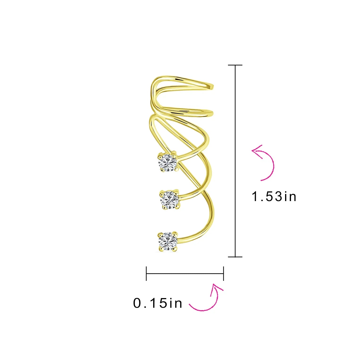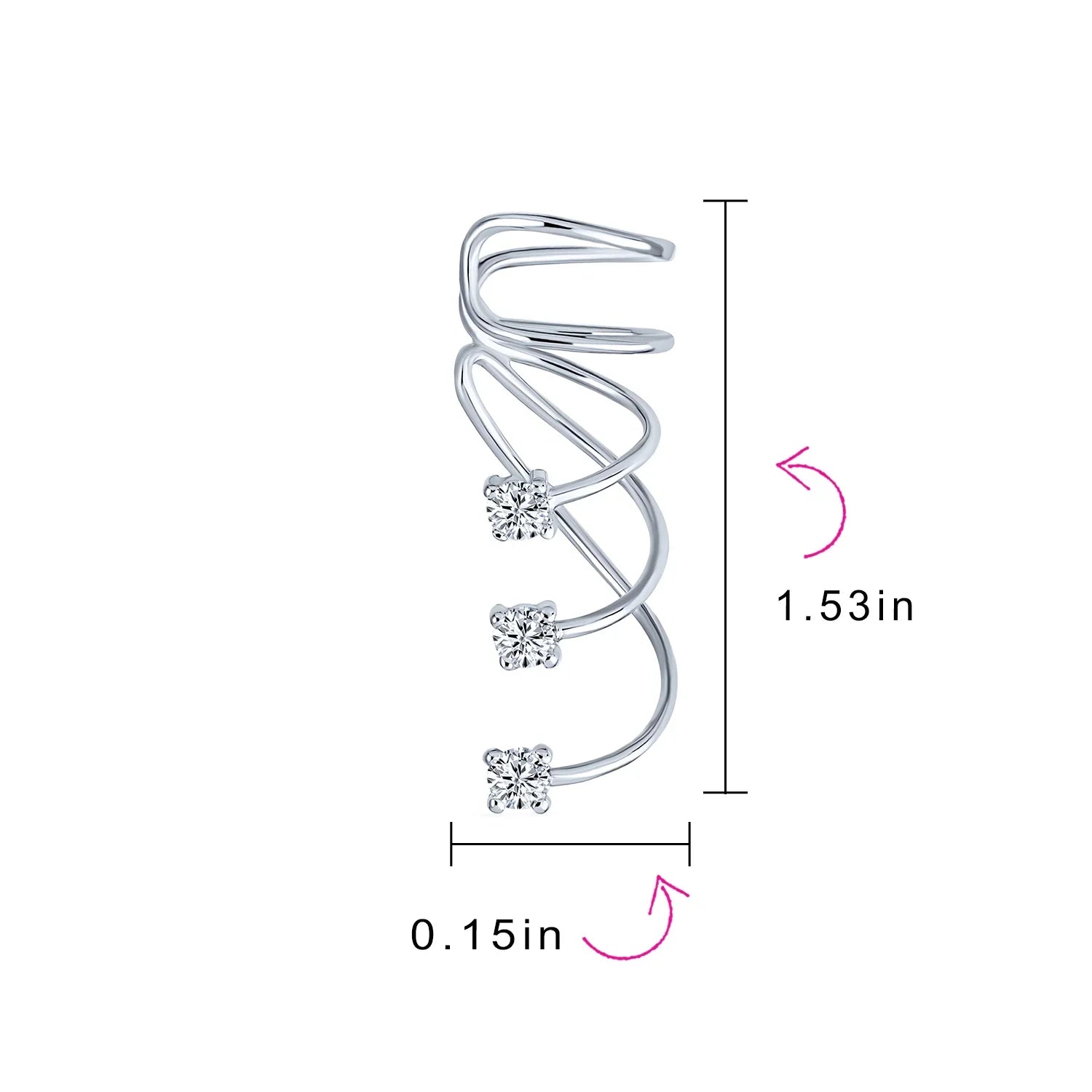 - STUNNINGLY BENDABLE DESIGN - Our CZ spiral ear cuff features a chic and trendy style with dazzling CZ accents that are sure to impress. Embrace your modern beauty with our striking sterling silver triple wire ear cuff earrings, adorned with a contemporary twist coil cut out design. No piercing necessary.