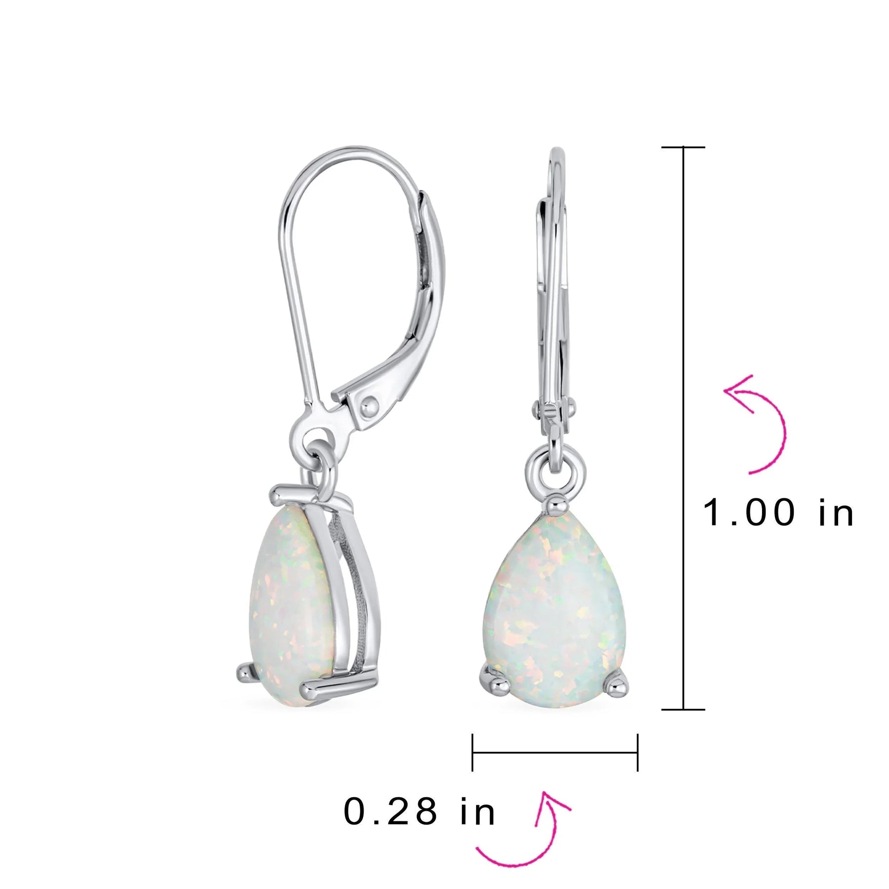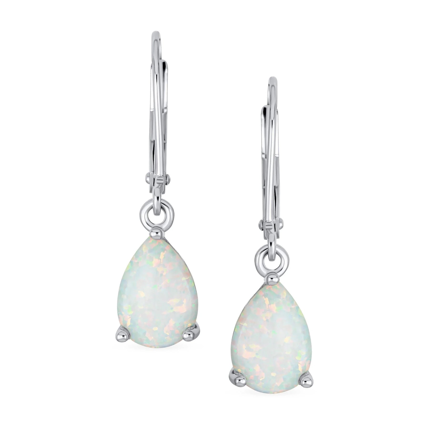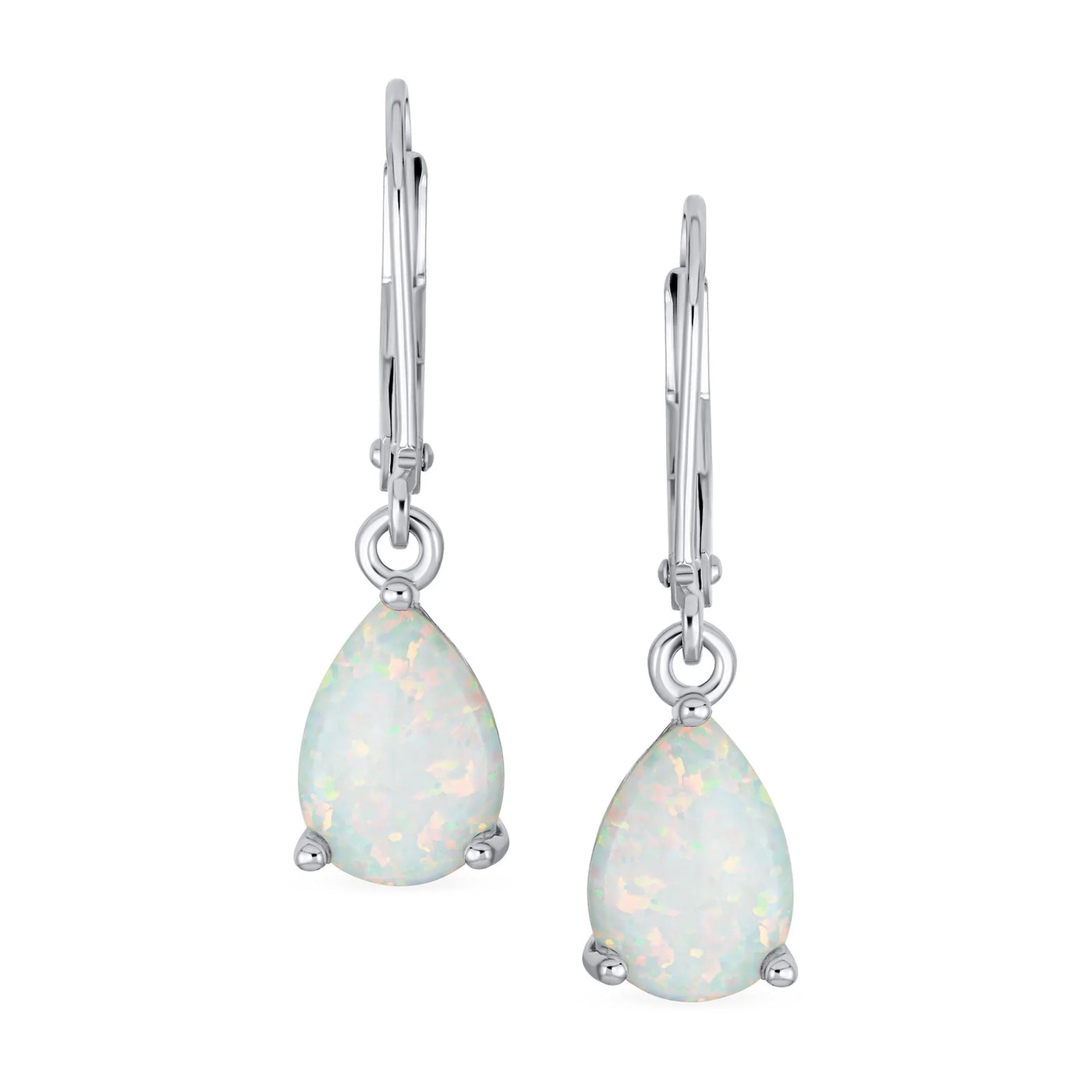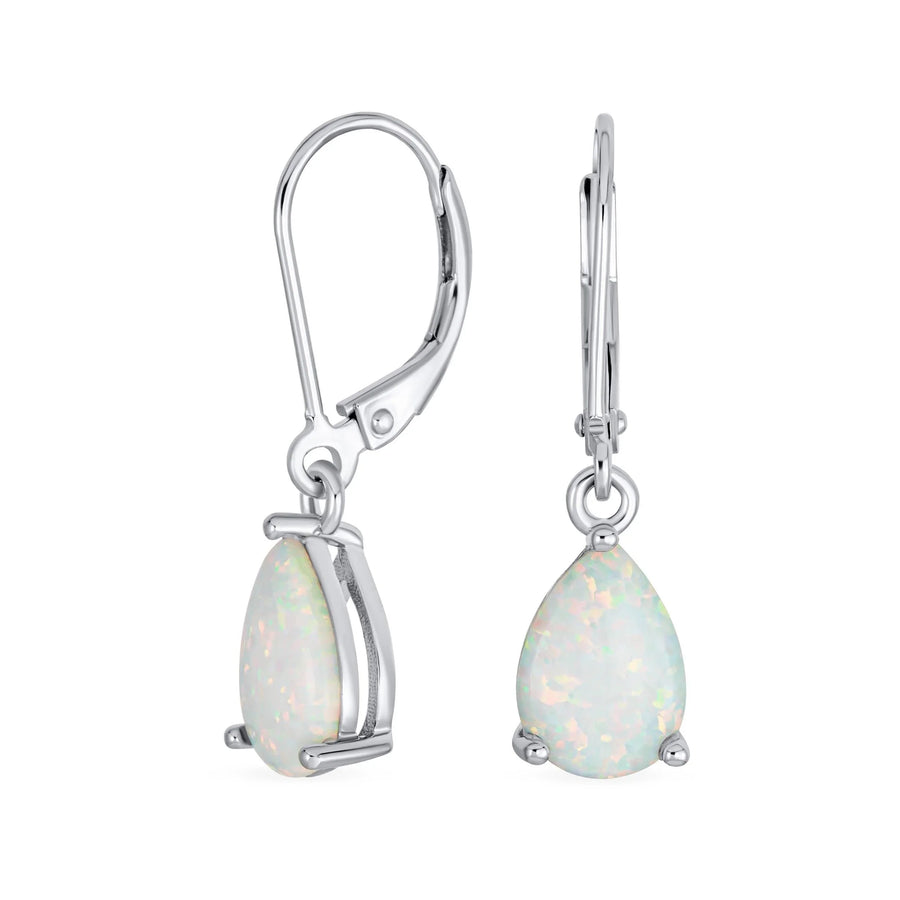 - Grab these stunning .925 silver and Created Opal dangle lever back earrings. Featuring teardrop solitaire White Created Opal, they add classic summer elegance and zest to any outfit.