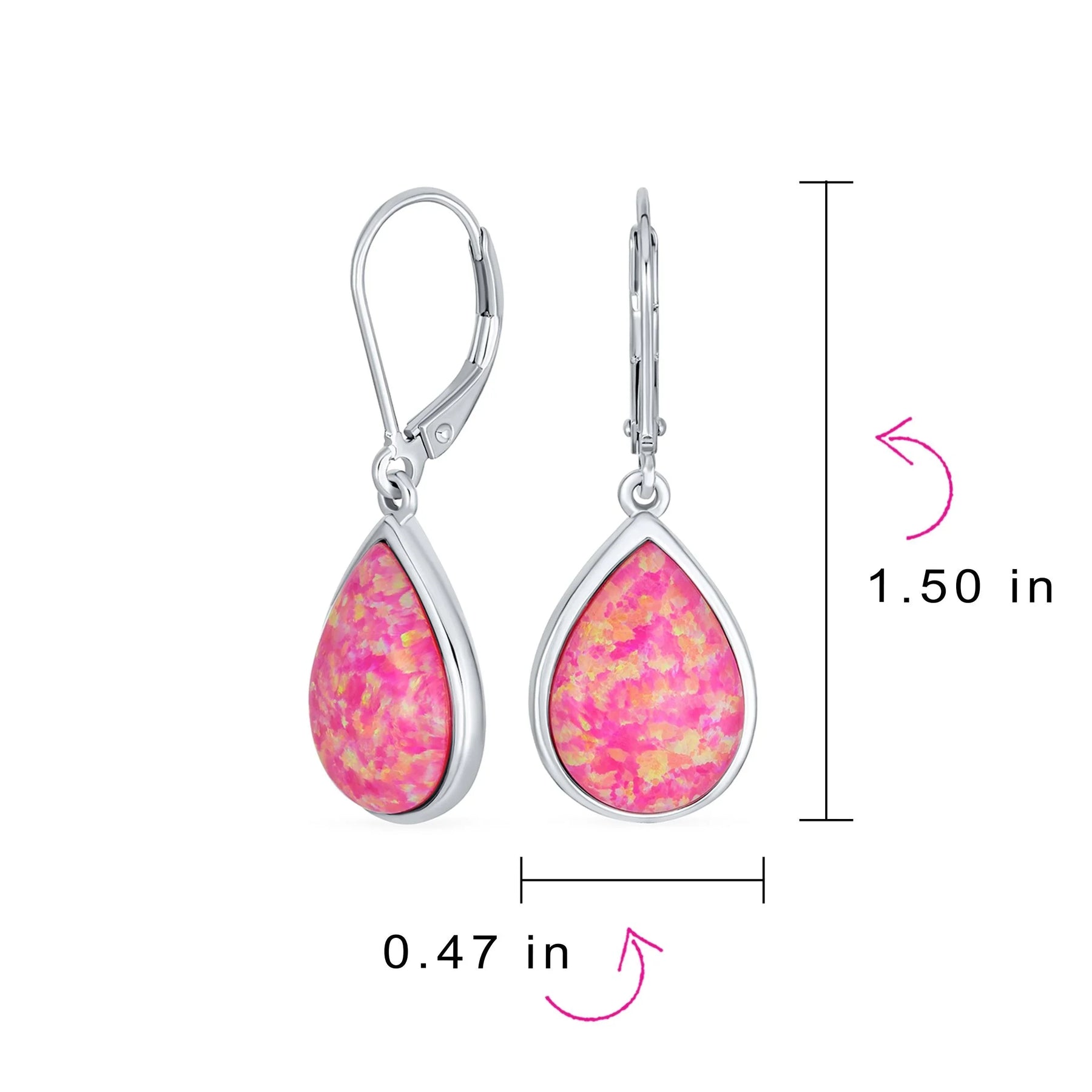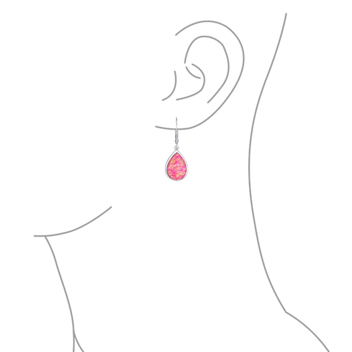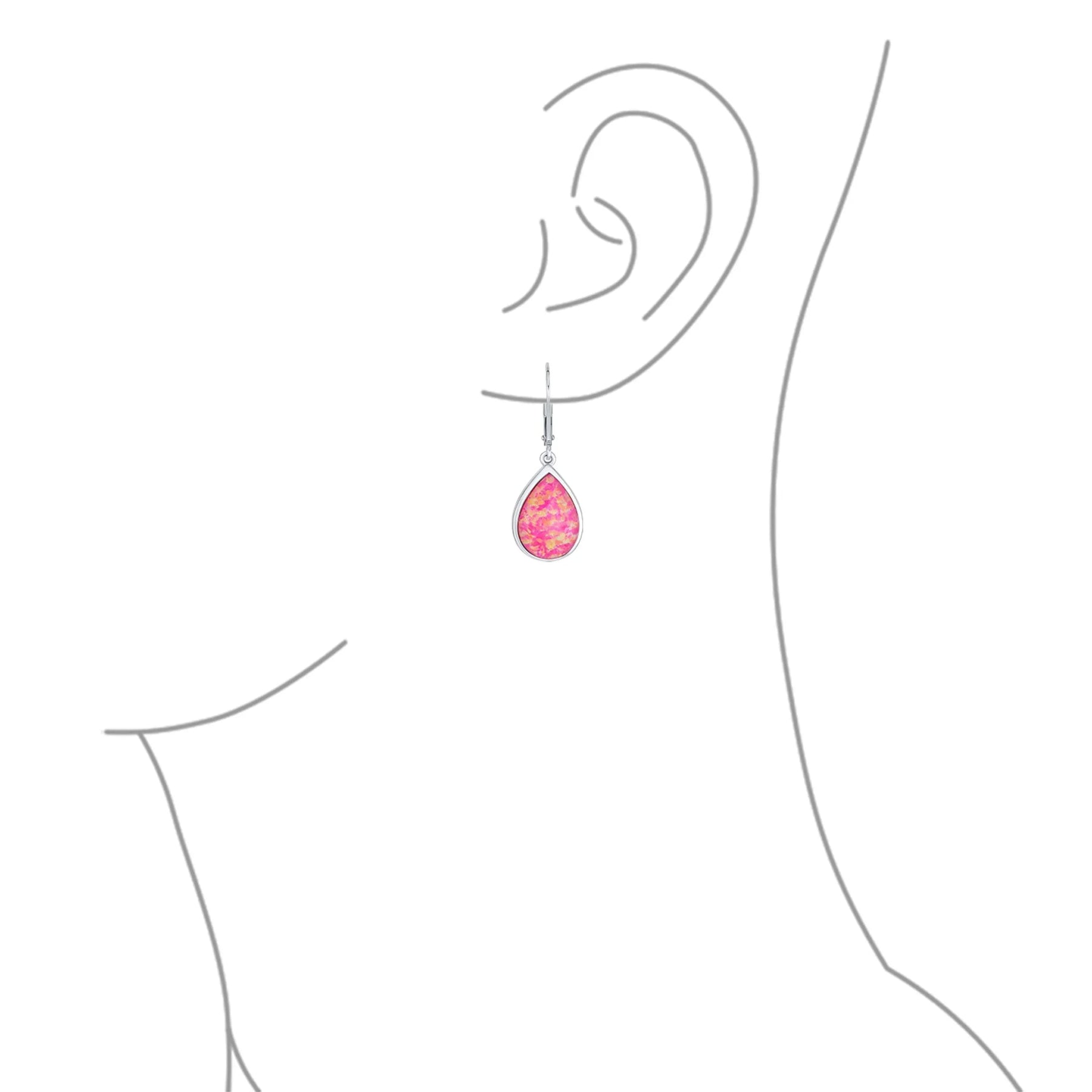 Pink Created Opal Teardrop Dangle Earrings in Sterling Silver Leverback
