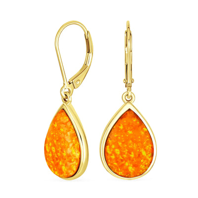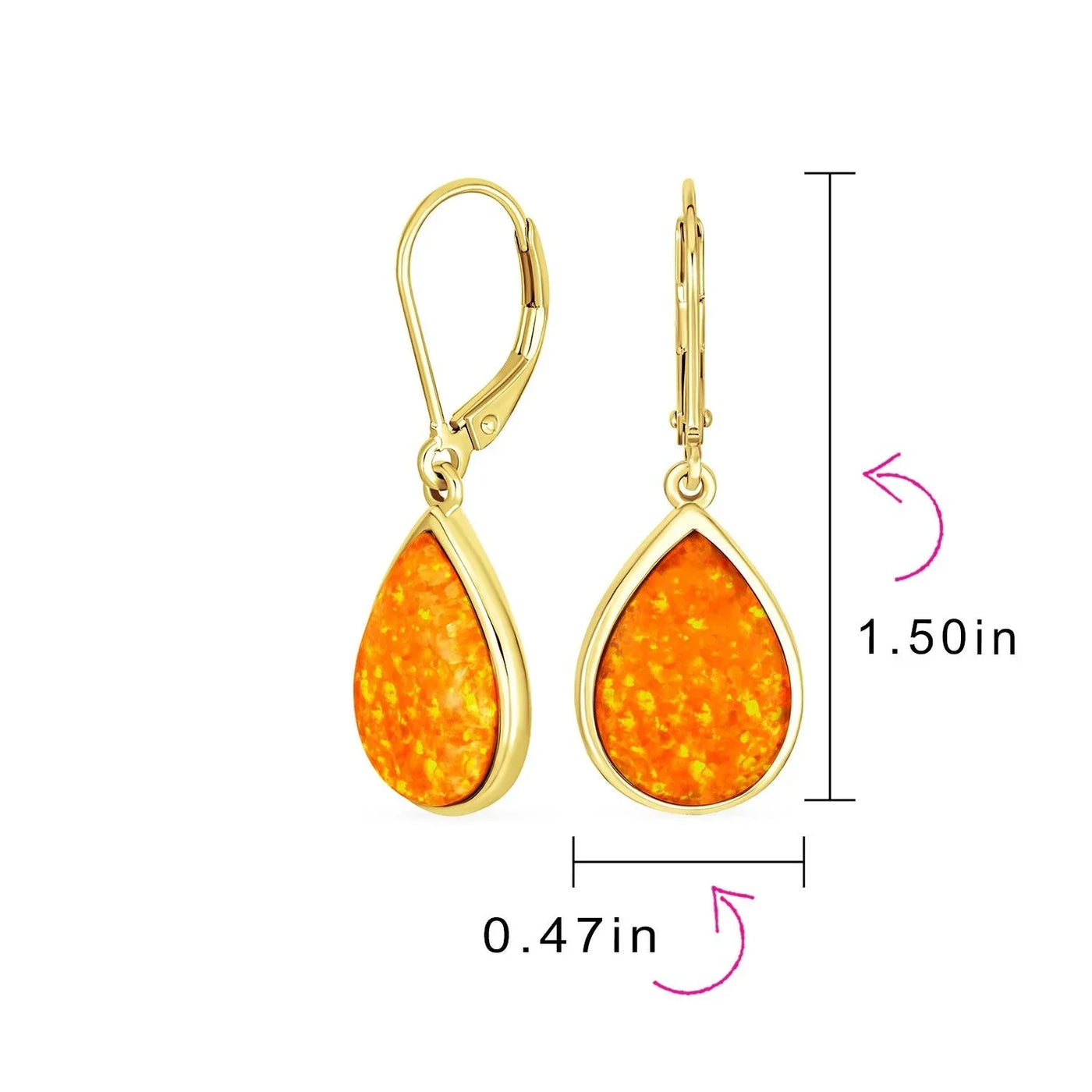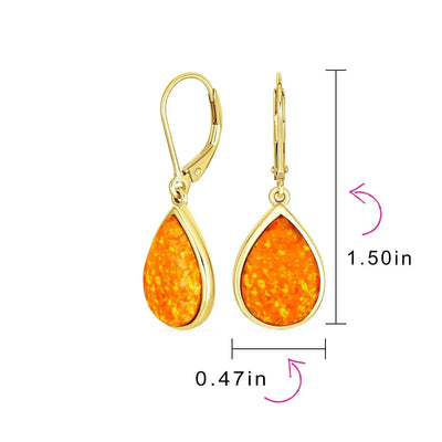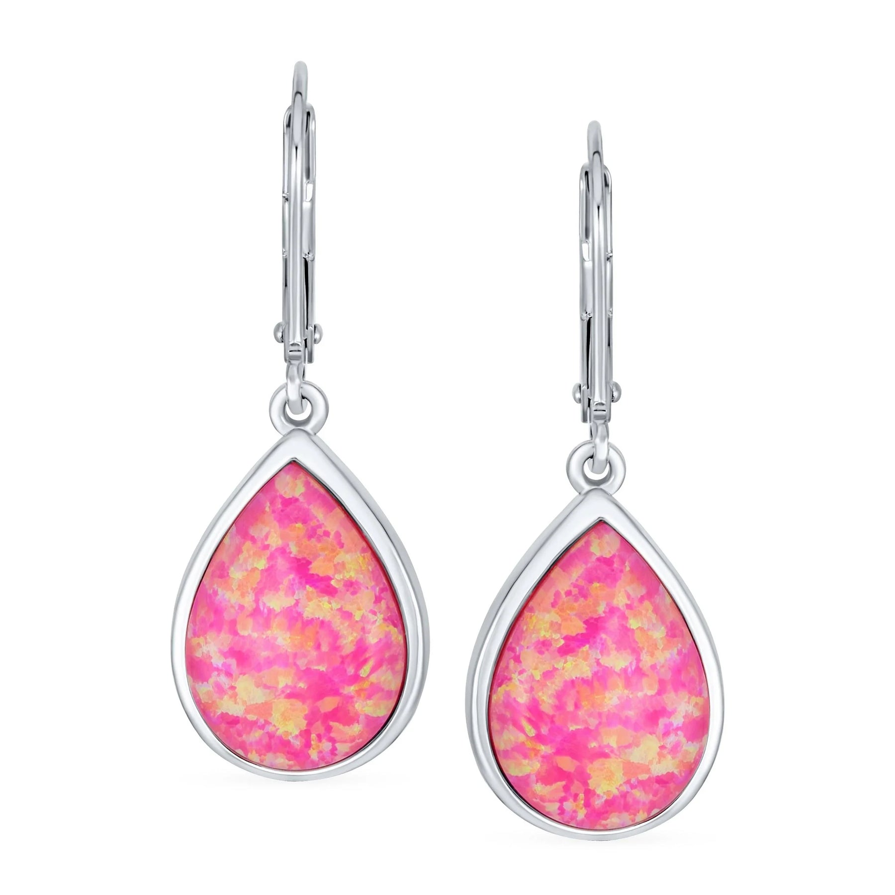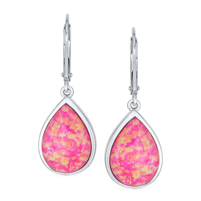 Pink Created Opal Teardrop Dangle Earrings in Sterling Silver Leverback