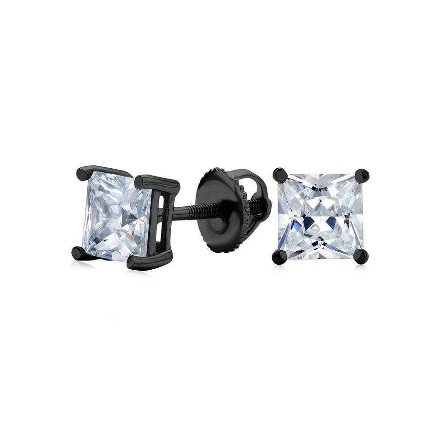 - These classic, stylish unisex black stud earrings offer a safe, comfortable fit. Sophisticated square onyx-colored CZ gemstones create a sleek, polished look. Black rhodium-plated sterling silver adds shine without being flashy. Chic stud earrings are perfect for gifting yourself or a loved one. Ideal for both men and women.