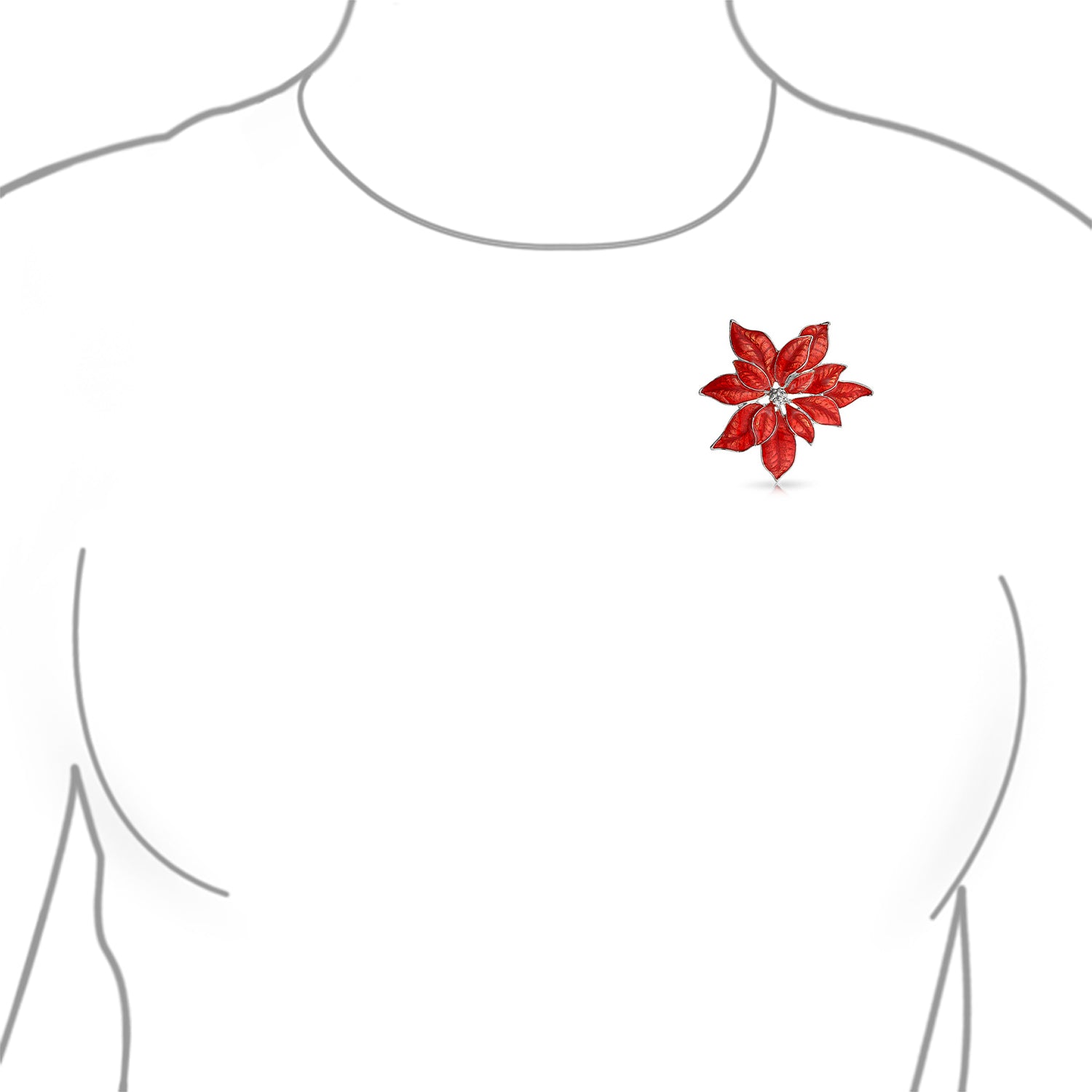 - Our stylish Christmas flower poinsettia Brooch Pin will add an elegant touch of the seasons favorite flower to your holiday look. Get right in the Christmas spirit with a chic new poinsettia flower brooch on the lapel of your holiday blazer, on a cozy Christmas sweater or on your favorite outfit that calls out for a pop of holiday red. Lustrous gold plated alloy trim glistens against the red enamel leaf design. Add a dash of feminine sophistication with Christmas spirit to your holiday season with this beautifully designed Brooch Pin.