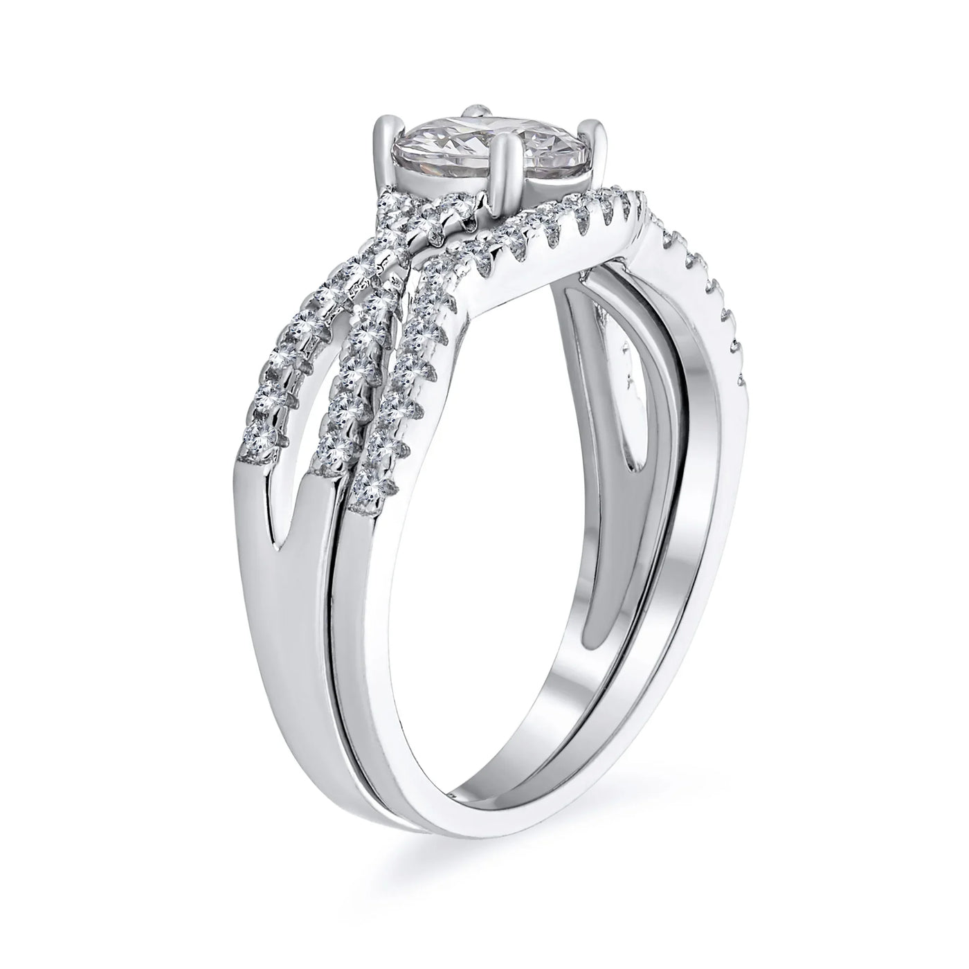 - Bridal Engagement Wedding Ring Set: Captivate your beloved with this stunning sterling silver engagement ring, featuring a 1.25 CT round cut CZ solitaire enhanced by elegant pave CZ side stones in a crisscross design. PERSONALIZE – Add a special touch with custom engraving of words, letters, numbers, dates, or coordinates in script or block letters. Click Customize Now to order. HYPOALLERGENIC - Lead-free and nickel-free, each piece is stamped .925, ensuring exceptional quality and craftsmanship.
